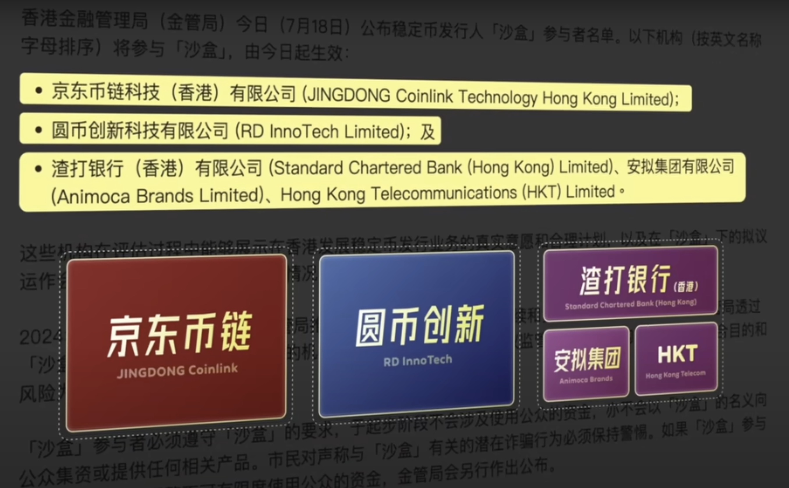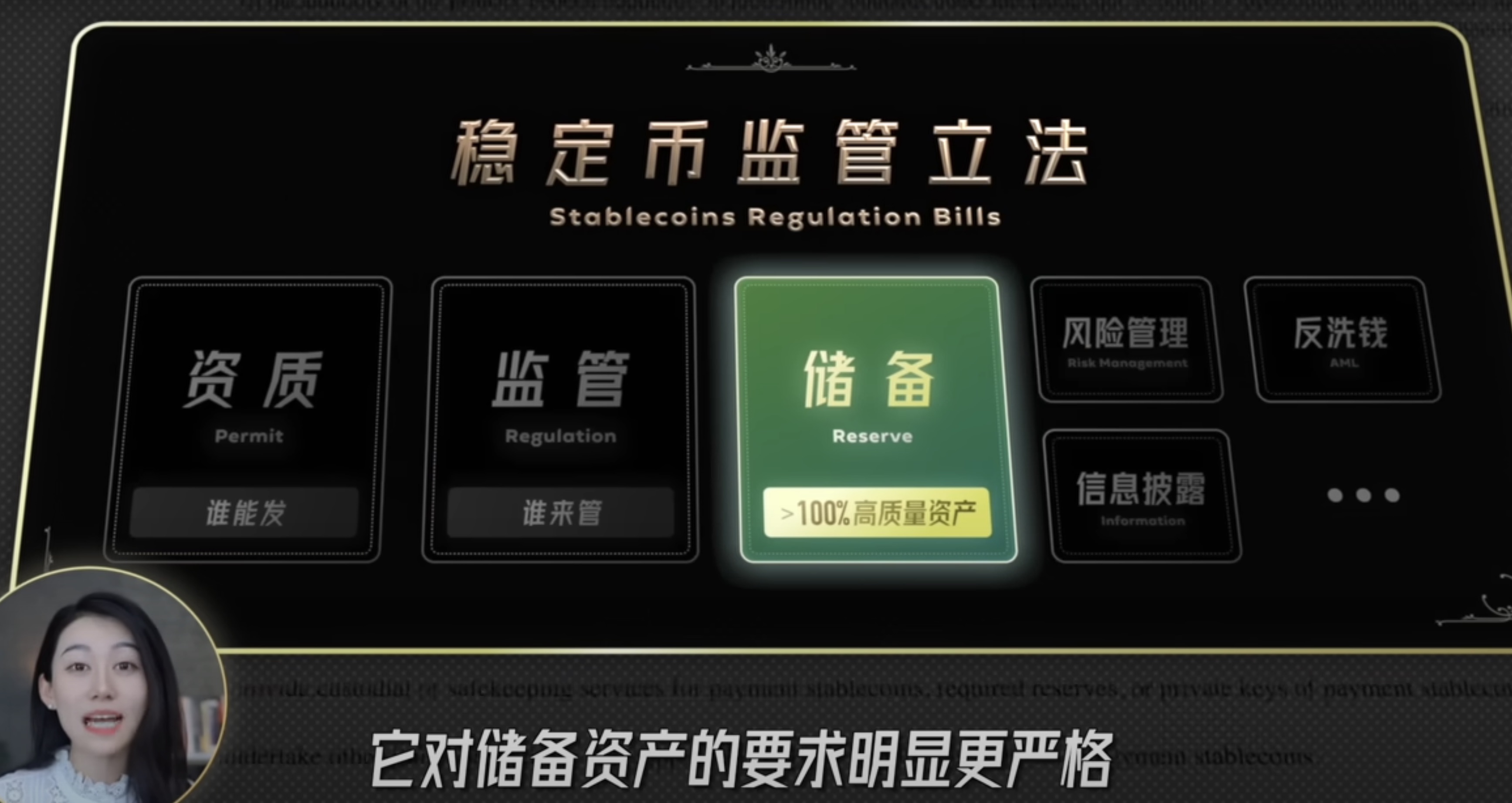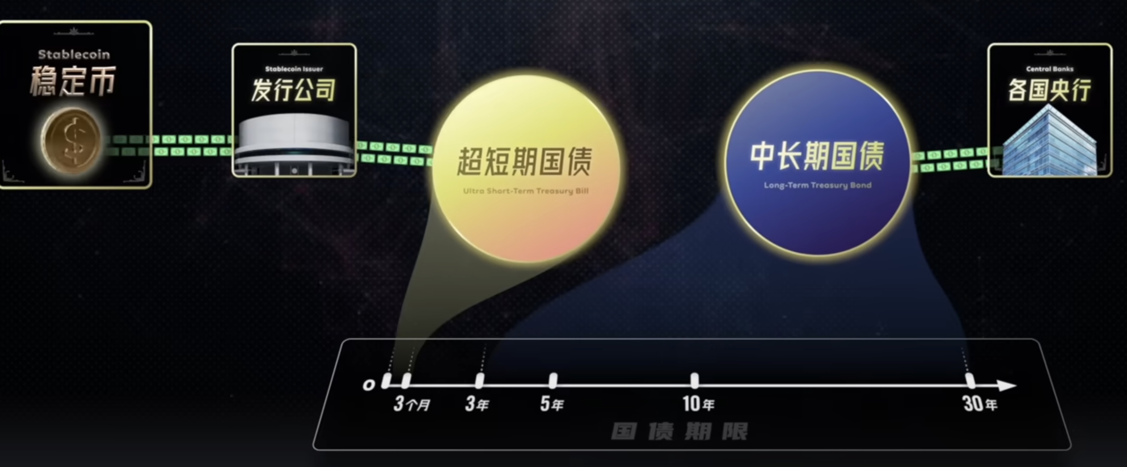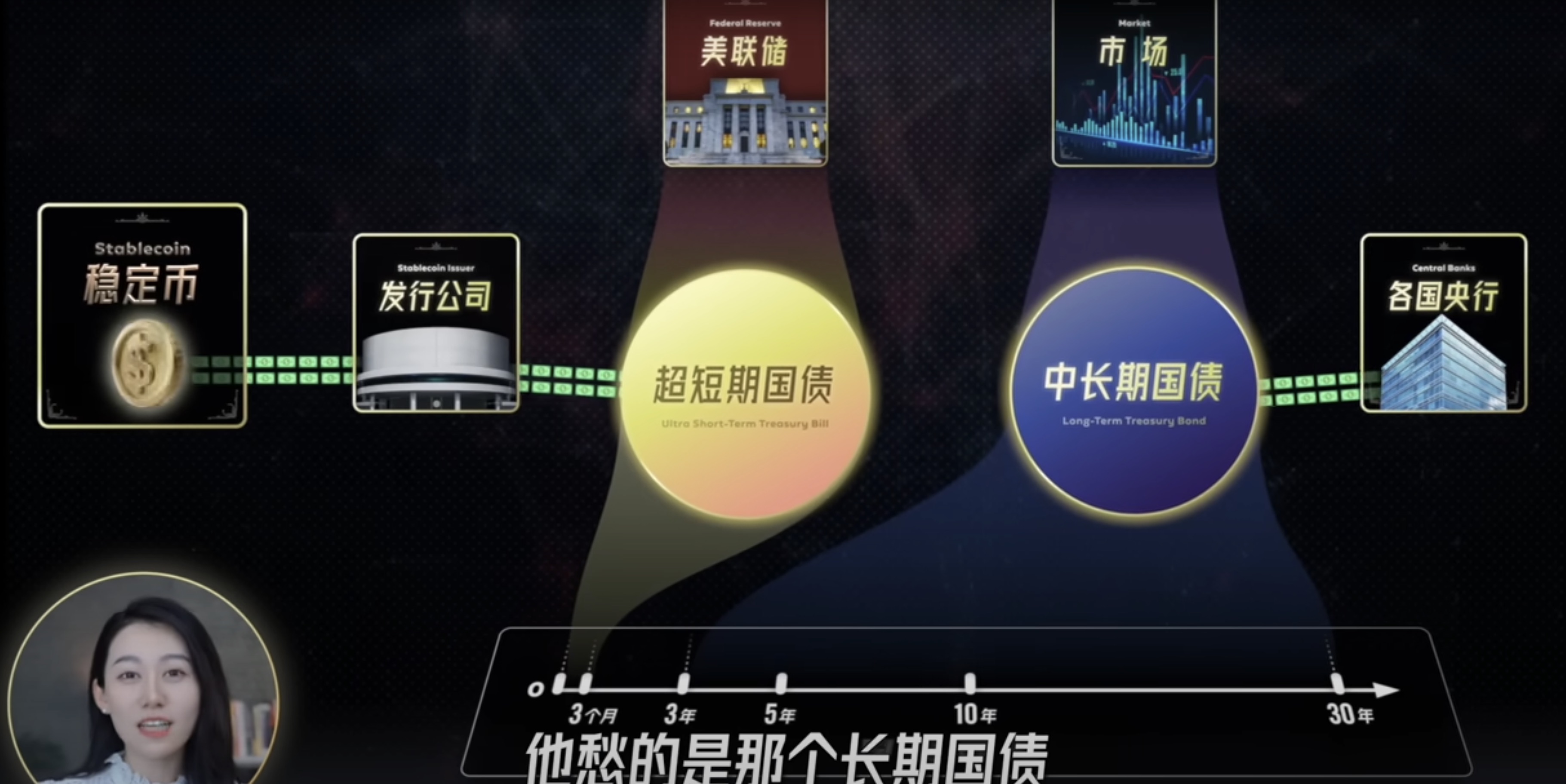这些图表提供了关于稳定币市场的全面概览,展示了稳定币市值的显著增长,尤其是在2020年至2025年期间。资料强调,美元在稳定币中占据主导地位,99%的稳定币与美元挂钩,但同时也提到了与欧元、离岸人民币和黄金挂钩的稳定币。此外,它探讨了美国政府推广稳定币的主要原因,包括维持美元地位、满足美债需求和提升加密货币世界地位,并列出了获得合规核心牌照的主要司法管辖区,如美国、巴哈马、迪拜、澳大利亚、欧盟和新加坡。图表还展示了稳定币发行公司如何通过投资短期和长期国债来运作,并概述了香港稳定币沙盒计划的参与者,包括京东链、圆币创新以及渣打银行等,并最终讨论了稳定币对银行的潜在影响,包括利润损失和经济联系的降低。