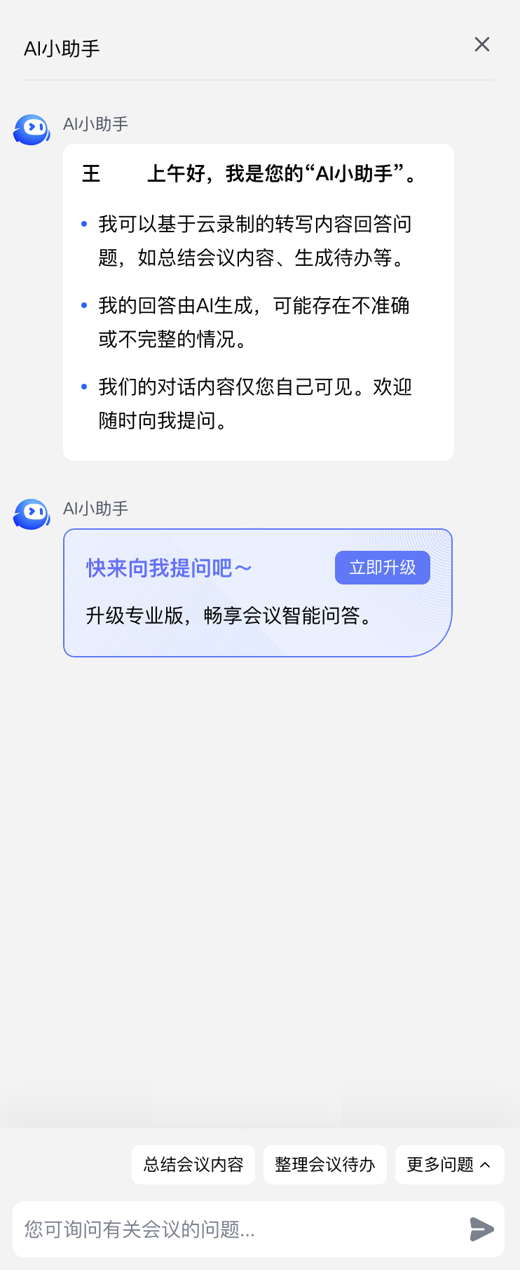 这个AI小助手价格太贵了,可能对于中大型企业用户有一定吸引力,没有多少录制视频的用户基本不用考虑,上面的功能已经足够了。