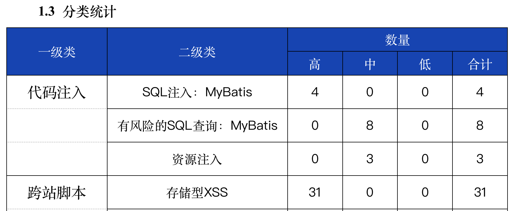 | 代码注入 | SQL注入:MyBatis | 4 | 0 | 0 | 4 |