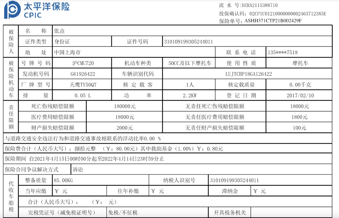 提示词:识别保单上面的信息:被保险人名称、被保险人身份证号、被保险人地址,使用 json 格式输出。