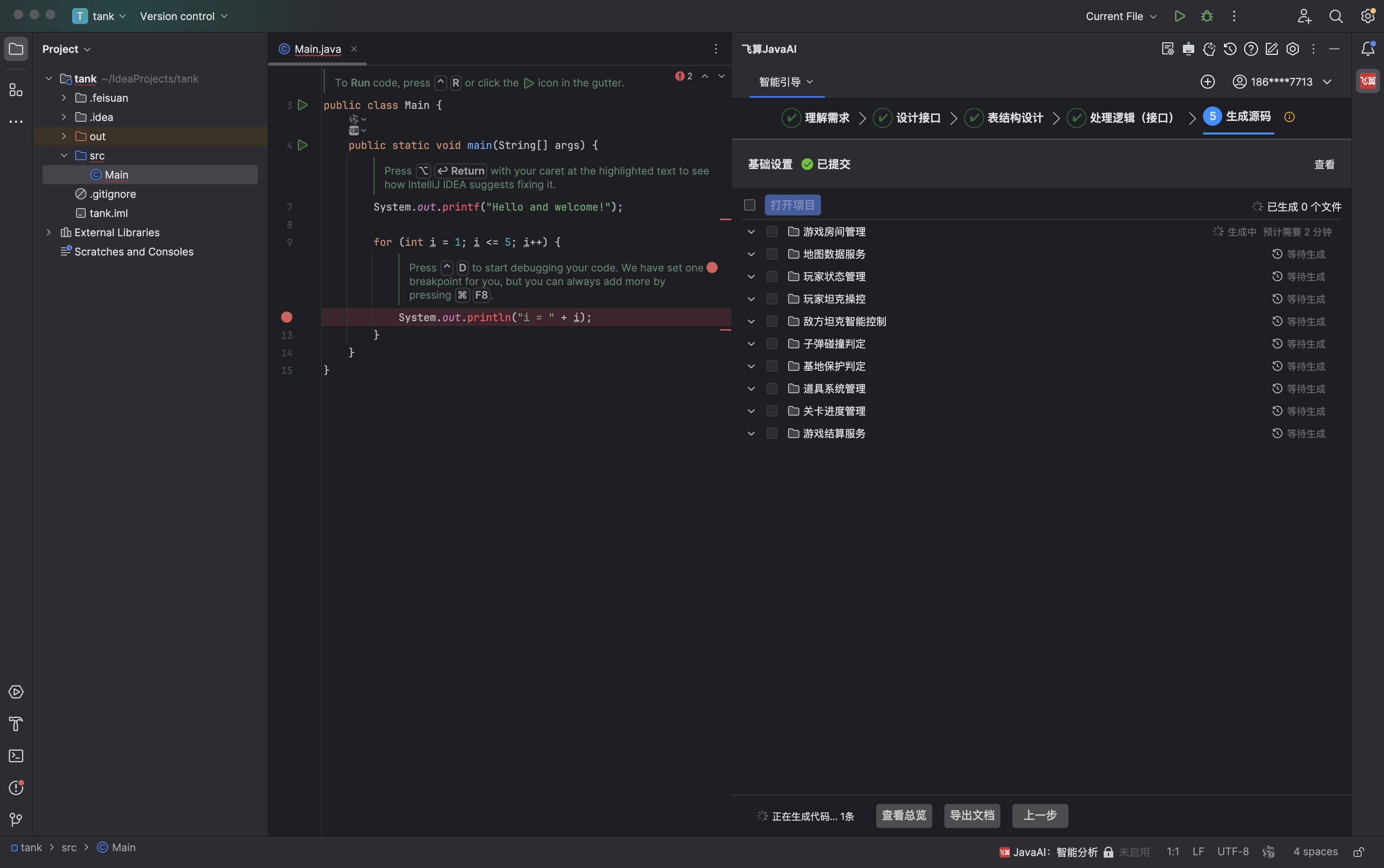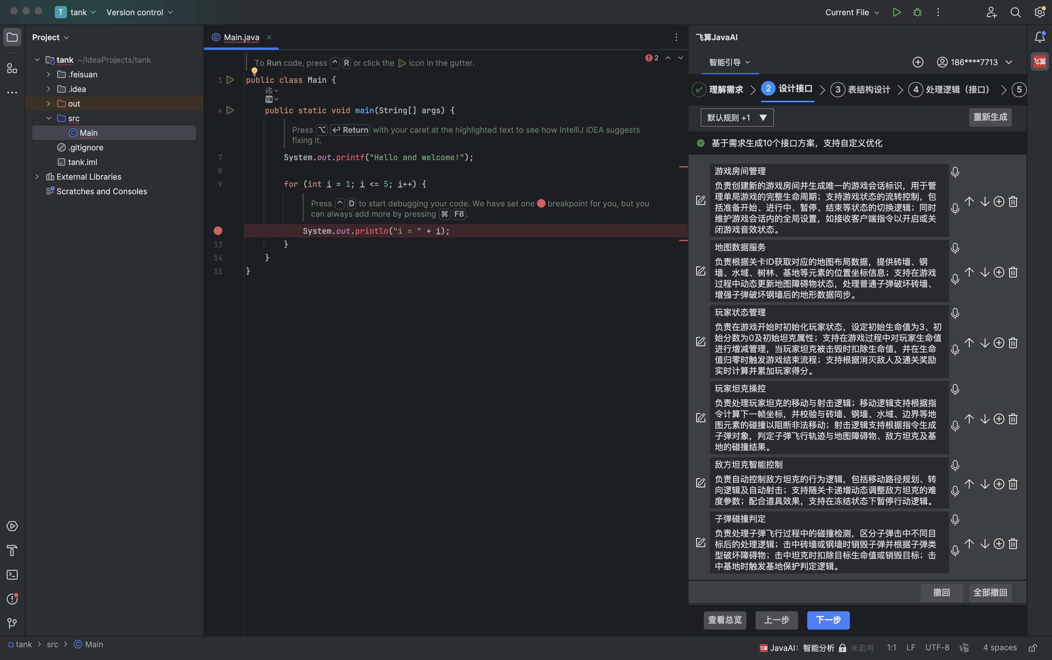飞算 JavaAI:五步智能引导构建坦克大战游戏