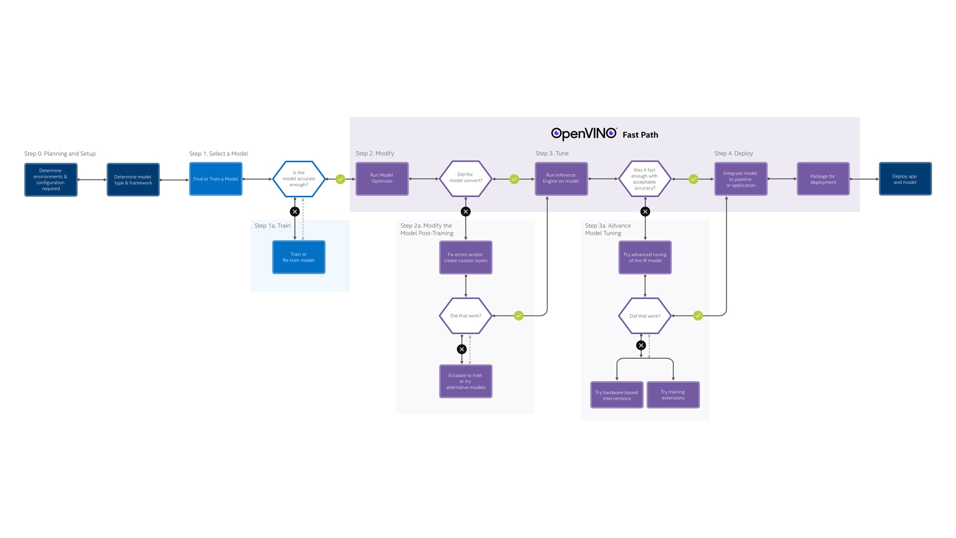 OpenVINO 包含一整套开发和部署工具,本工作流研究从设置和计划解决方案到部署的关键步骤。
