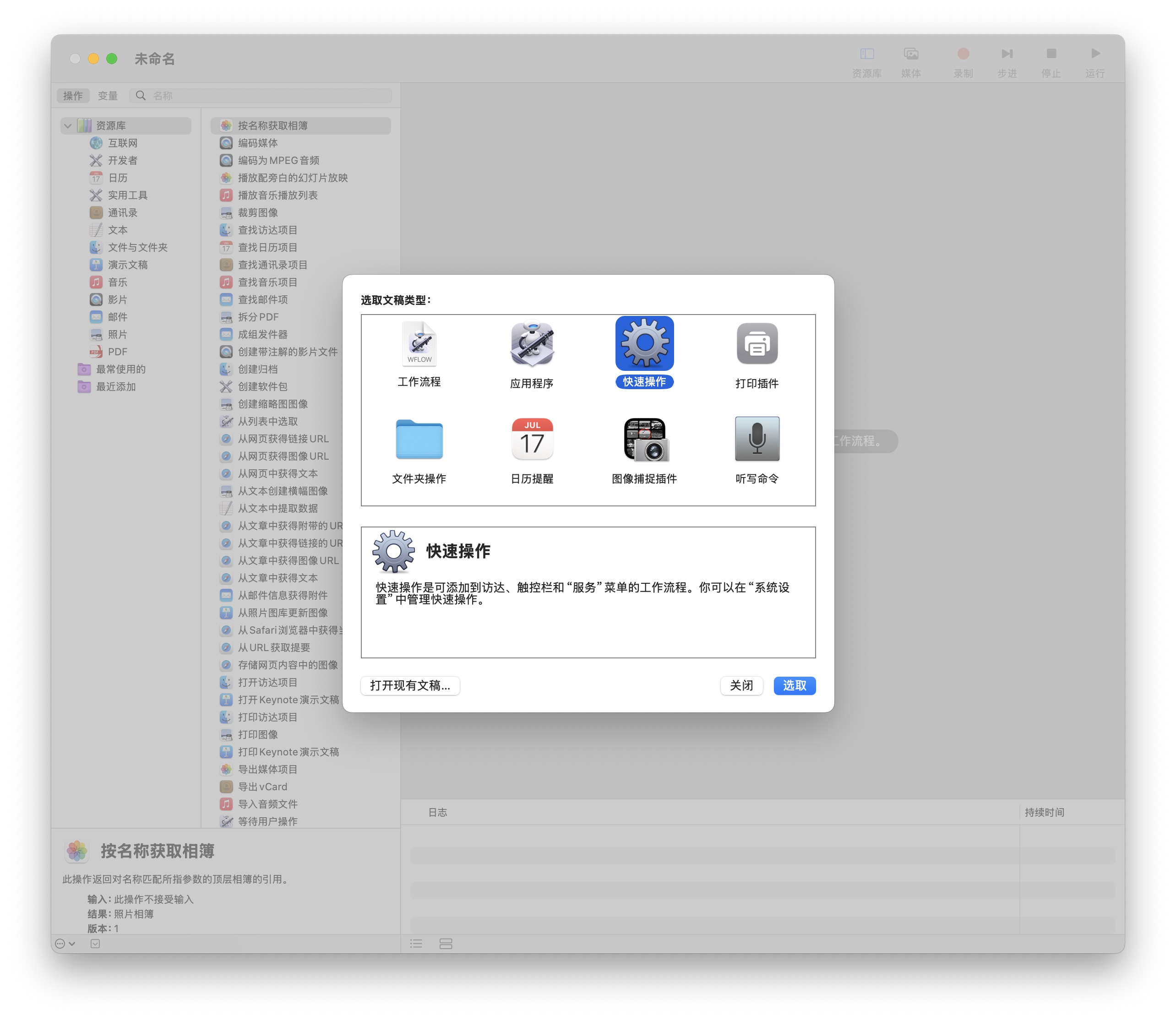 - 为您的快速操作指定一个描述性的名称,例如“处理文件夹中的图像”或“重命名并转换图像”。