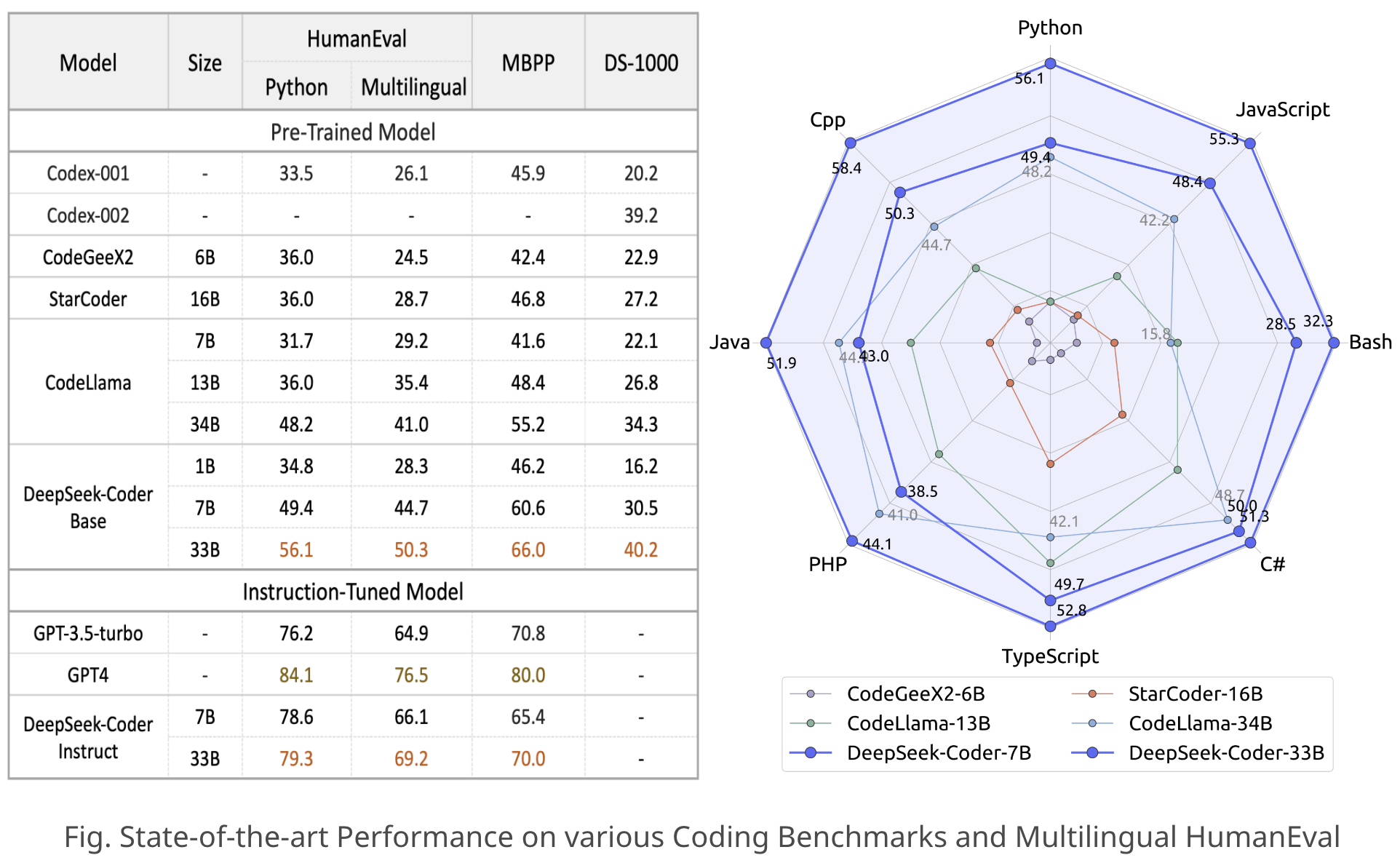 - 步骤 3:对指令数据的 2B 令牌进行指令微调,从而产生指令调整模型 ( DeepSeek-Coder-Instruct )。