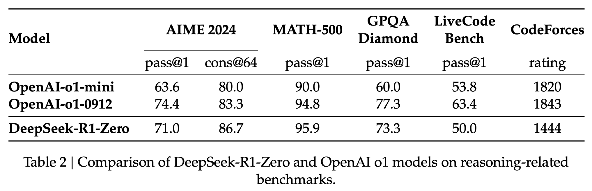表2 DeepSeek-R1-Zero和OpenAI o1模型在推理相关基准上的比较