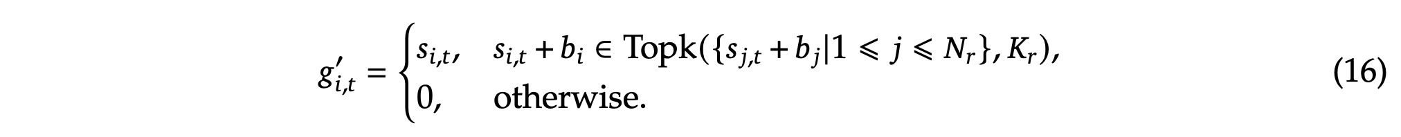 其中 𝑁𝑠 和 𝑁𝑟 分别表示共享专家和路由专家的数量;FFN(𝑠)𝑖 (·) 和 FFN(𝑟)𝑖 (·) 分别表示第 𝑖 个共享专家和第 𝑖 个路由专家;𝐾𝑟 表示激活的路由专家数量;𝑔𝑖,𝑡 是第 𝑖 个专家的门控值;𝑠𝑖,𝑡 是 token 到专家的亲和力;e𝑖 是第 𝑖 个路由专家的质心向量;Topk(·, 𝐾) 表示计算第 𝑡 个 token 和所有路由专家之间的亲和力得分中的 𝐾 个最高分数的集合。与 DeepSeek-V2 稍有不同,DeepSeek-V3 使用 sigmoid 函数计算亲和力得分,并在所有选定的亲和力得分之间应用归一化以生成门控值。