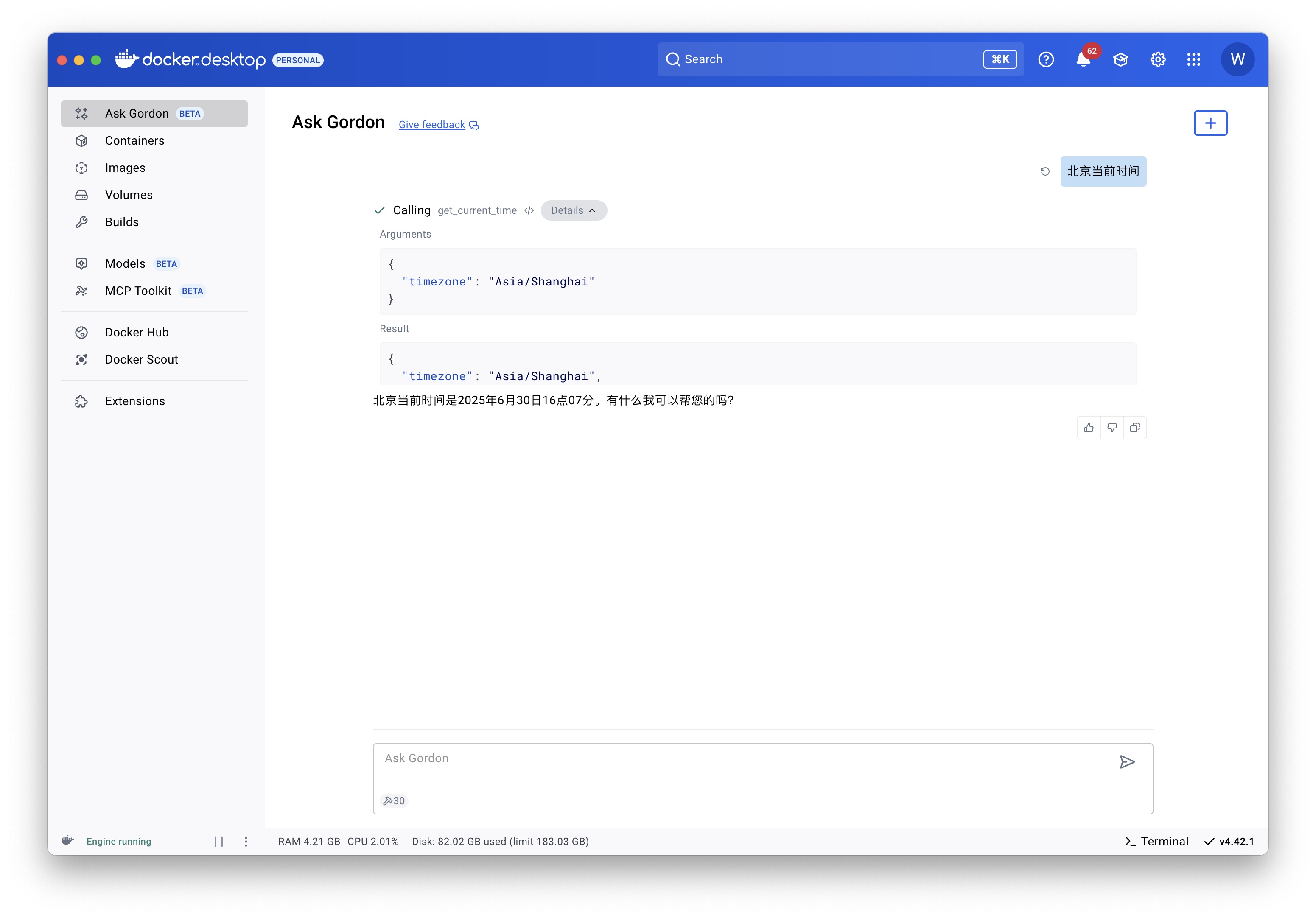 Ask Gordon 是您在 Docker Desktop 和 Docker CLI 中嵌入的个人 AI 助手。它旨在简化您的工作流程,帮助您充分利用 Docker 生态系统。