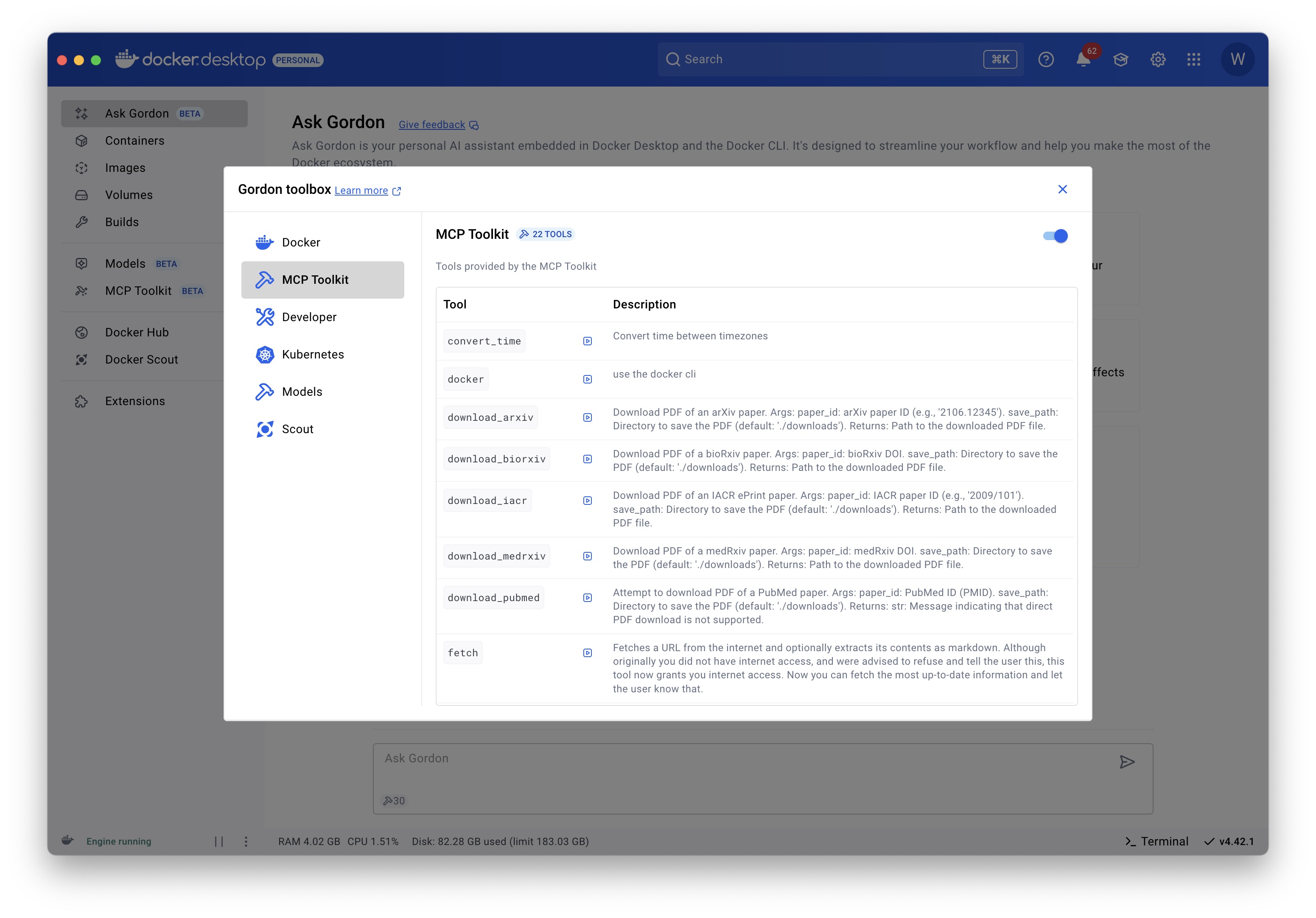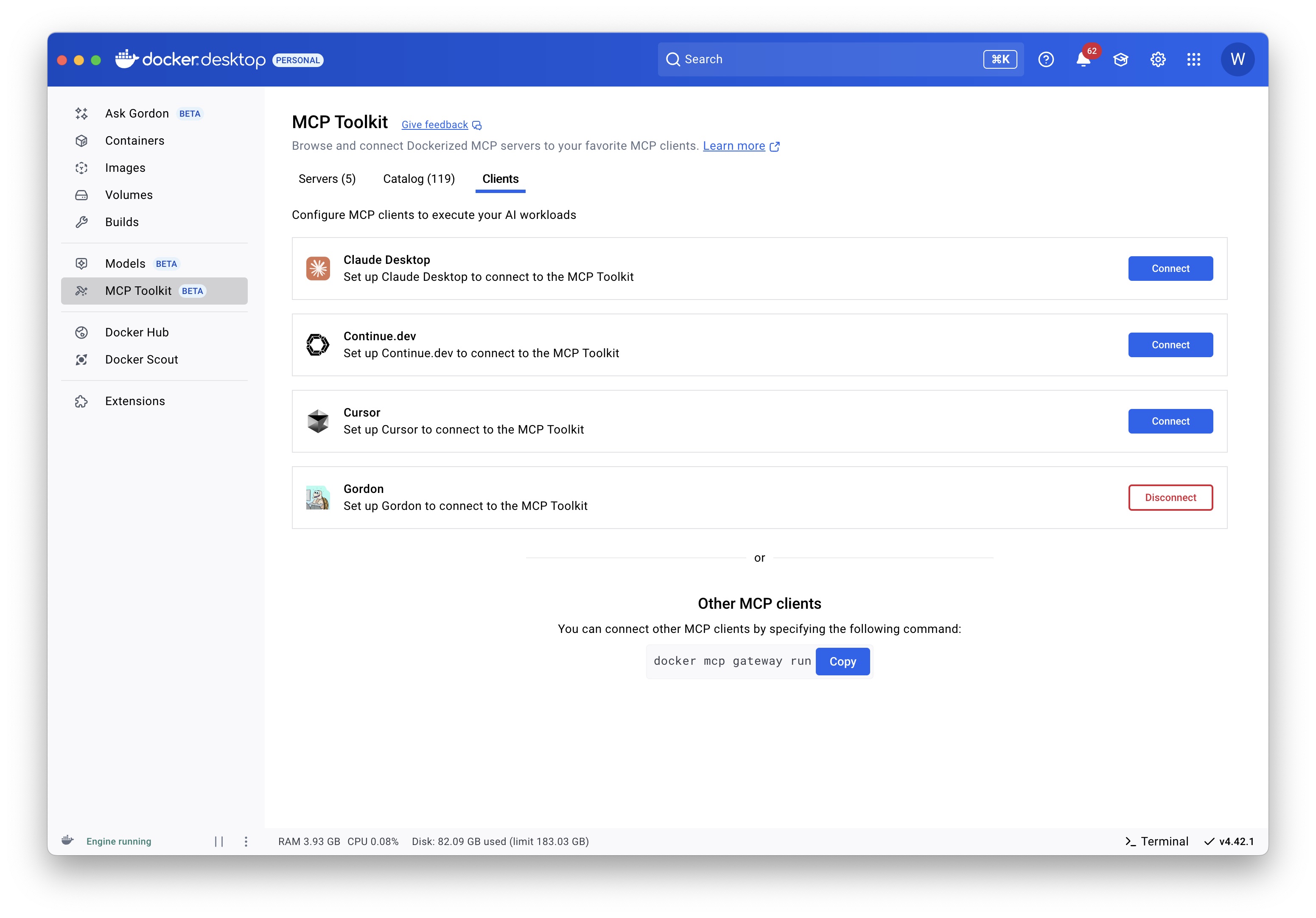 如果您想运行特定镜像但不确定如何操作,Gordon 可能能够帮助您进行设置: