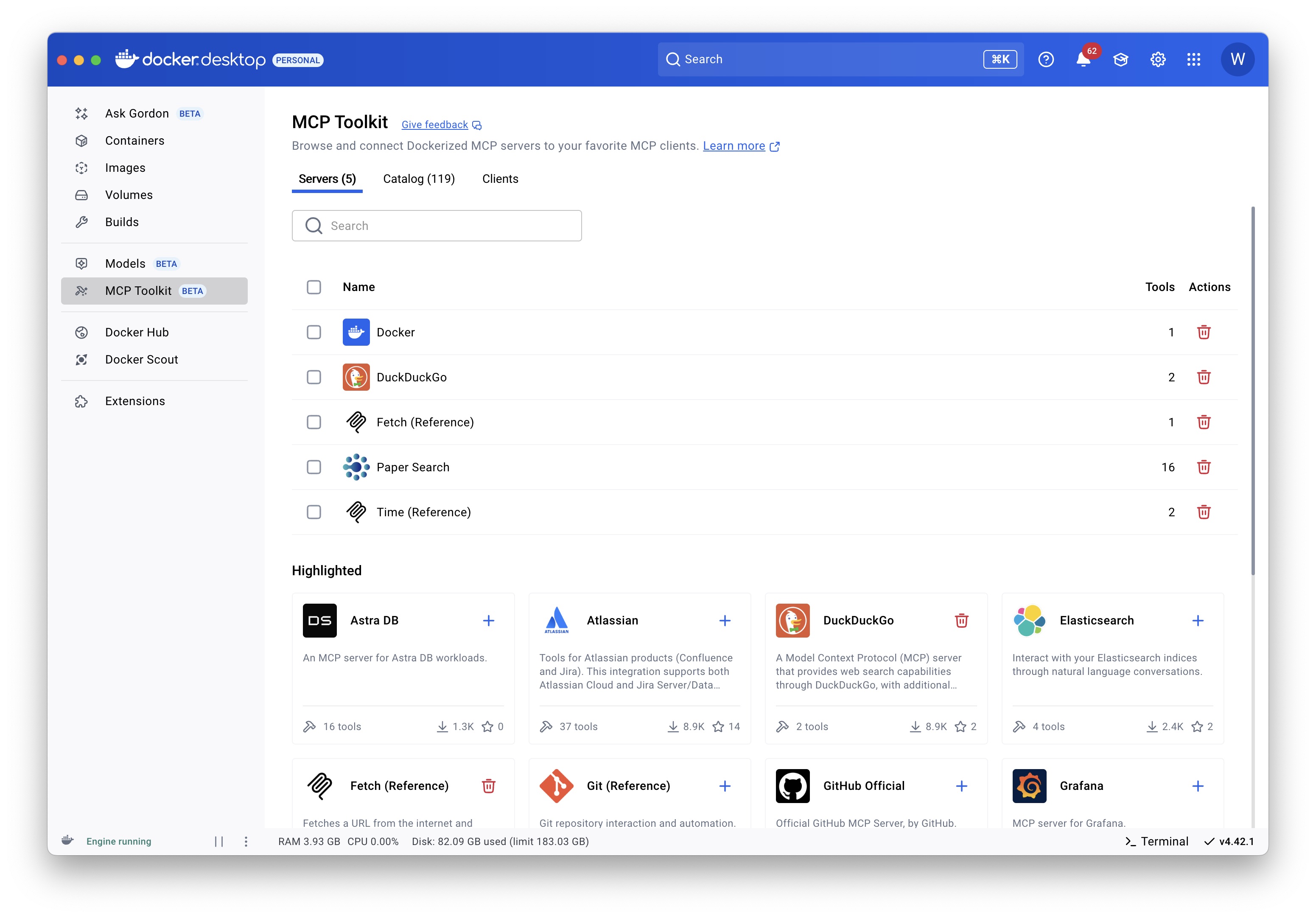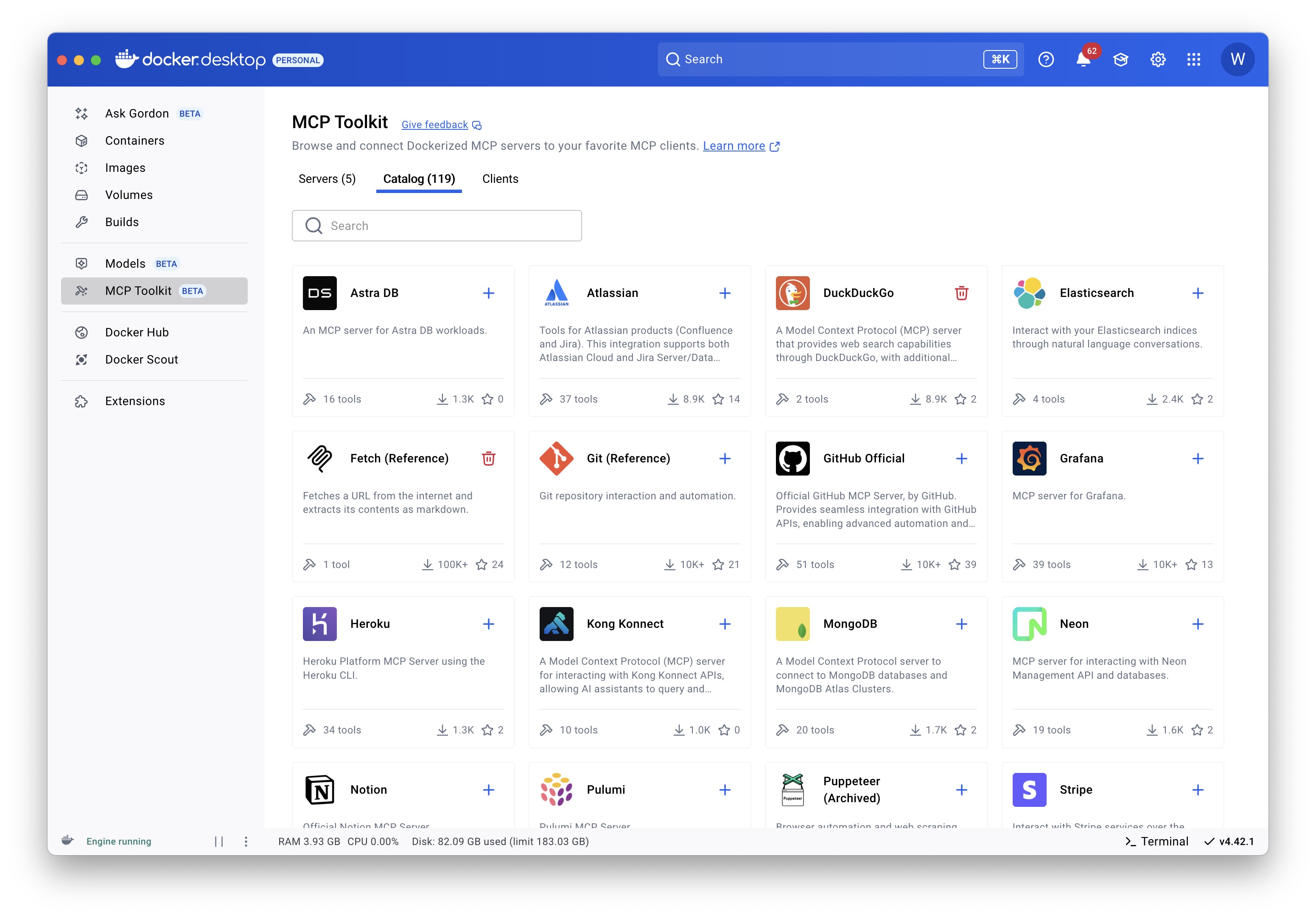 Docker MCP Toolkit 实现了容器化 MCP 服务器及其与 AI 代理连接的无缝设置、管理和运行。通过提供安全默认配置、一键式设置以及对日益增长的基于 LLM 的客户端生态系统的支持,消除了工具使用障碍。这是从发现 MCP 工具到本地执行的最快捷路径。