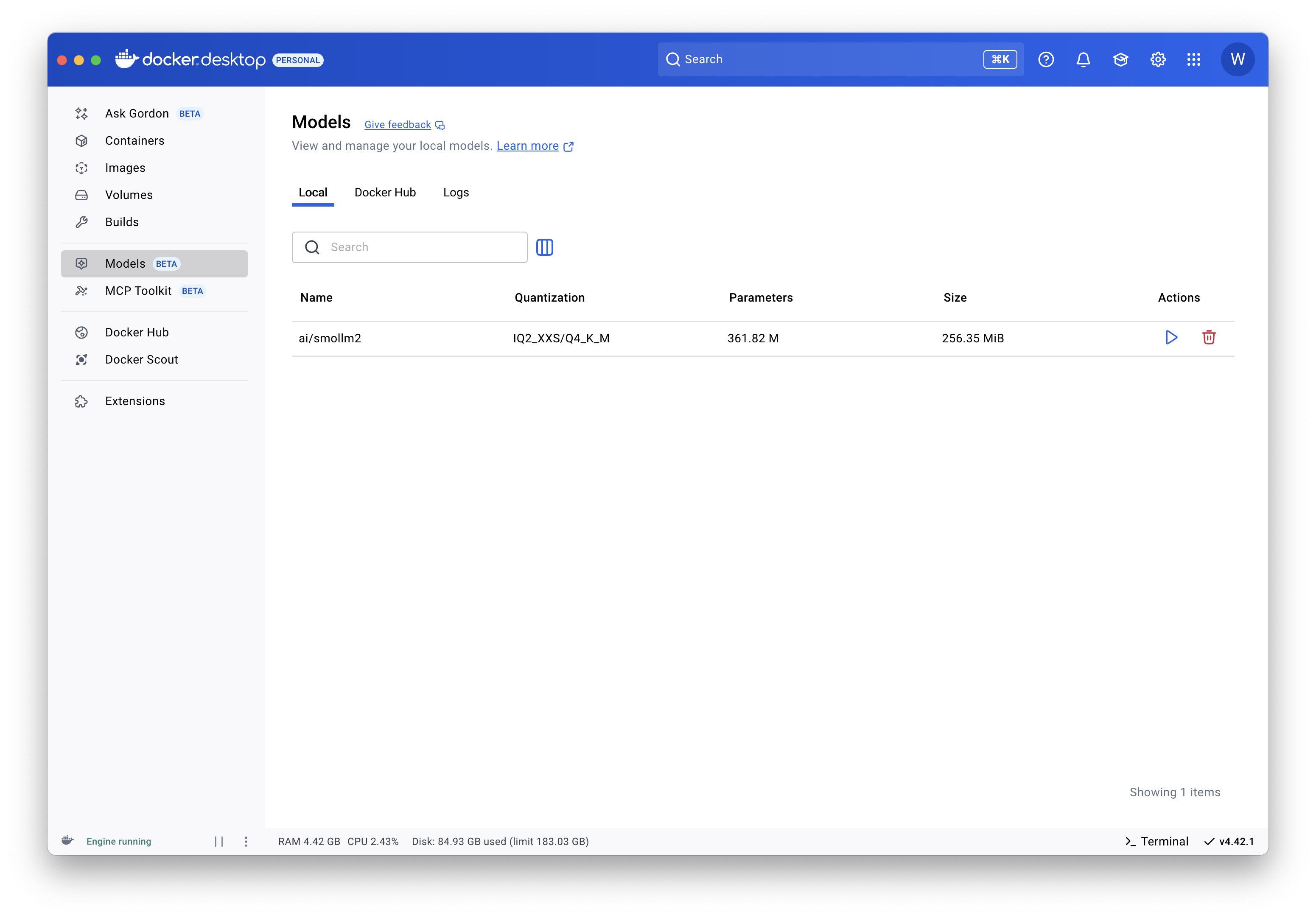 docker desktop enable model-runner --tcp <port>。如果您在 Windows 上运行,还要启用 GPU 加速推理。 请参阅启用 Docker Model Runner。