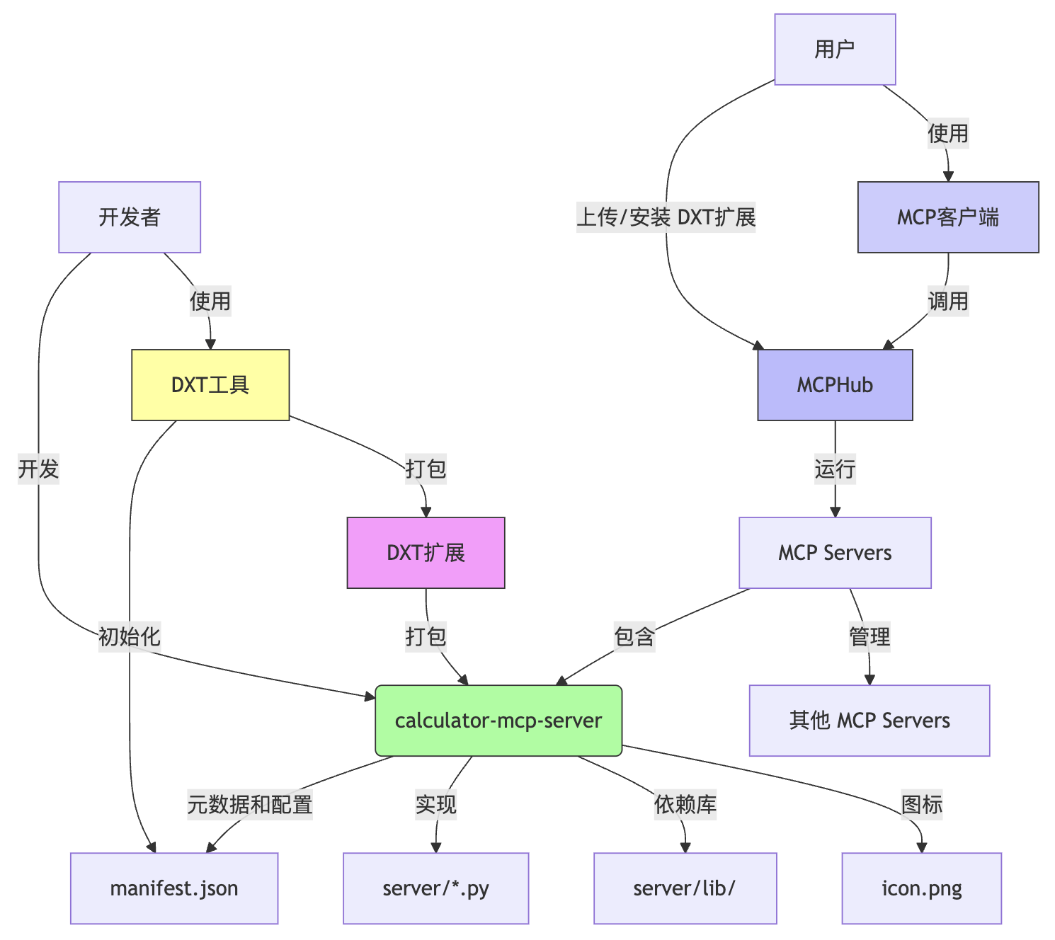 A[DXT扩展] -->|打包| B(calculator-mcp-server)