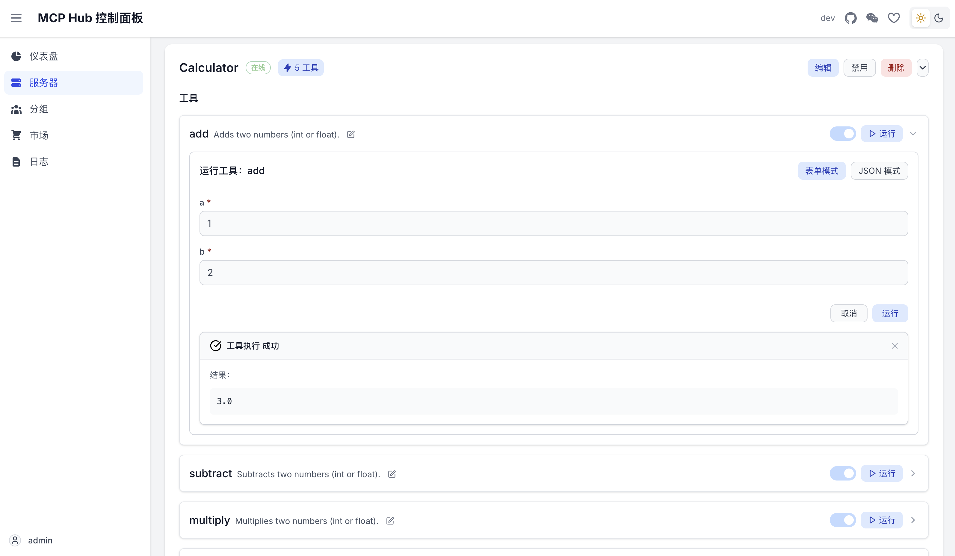 ✔ Description: An MCP extension that provides a calculator supporting addition, subtraction, multiplication, and division.