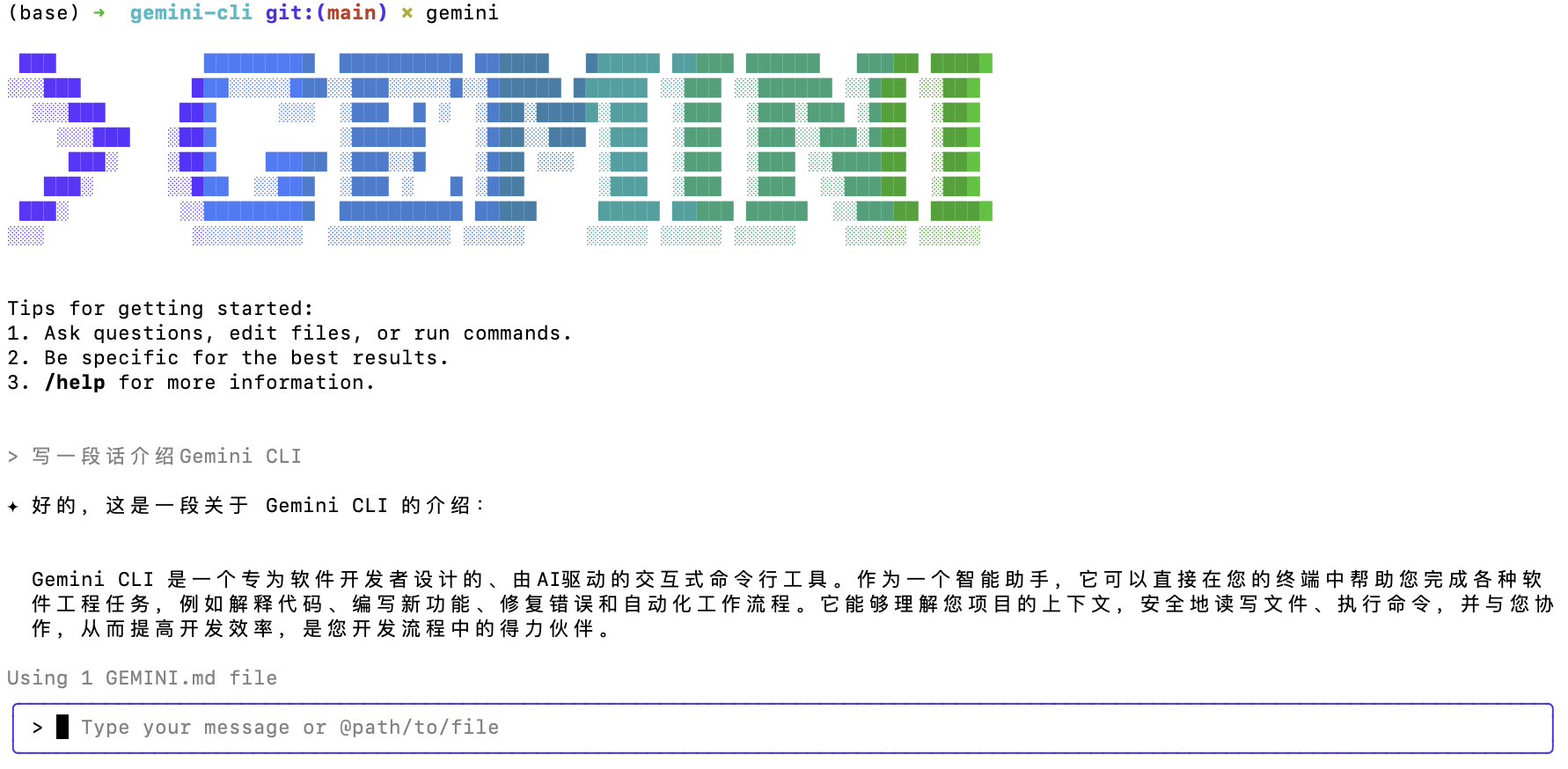 Gemini CLI 是一个专为软件开发者设计的、由AI驱动的交互式命令行工具。作为一个智能助手,它可以直接在您的终端中帮助您完成各种软件工程任务,例如解释代码、编写新功能、修复错误和自动化工作流程。它能够理解您项目的上下文,安全地读写文件、执行命令,并与您协作,从而提高开发效率,是您开发流程中的得力伙伴。