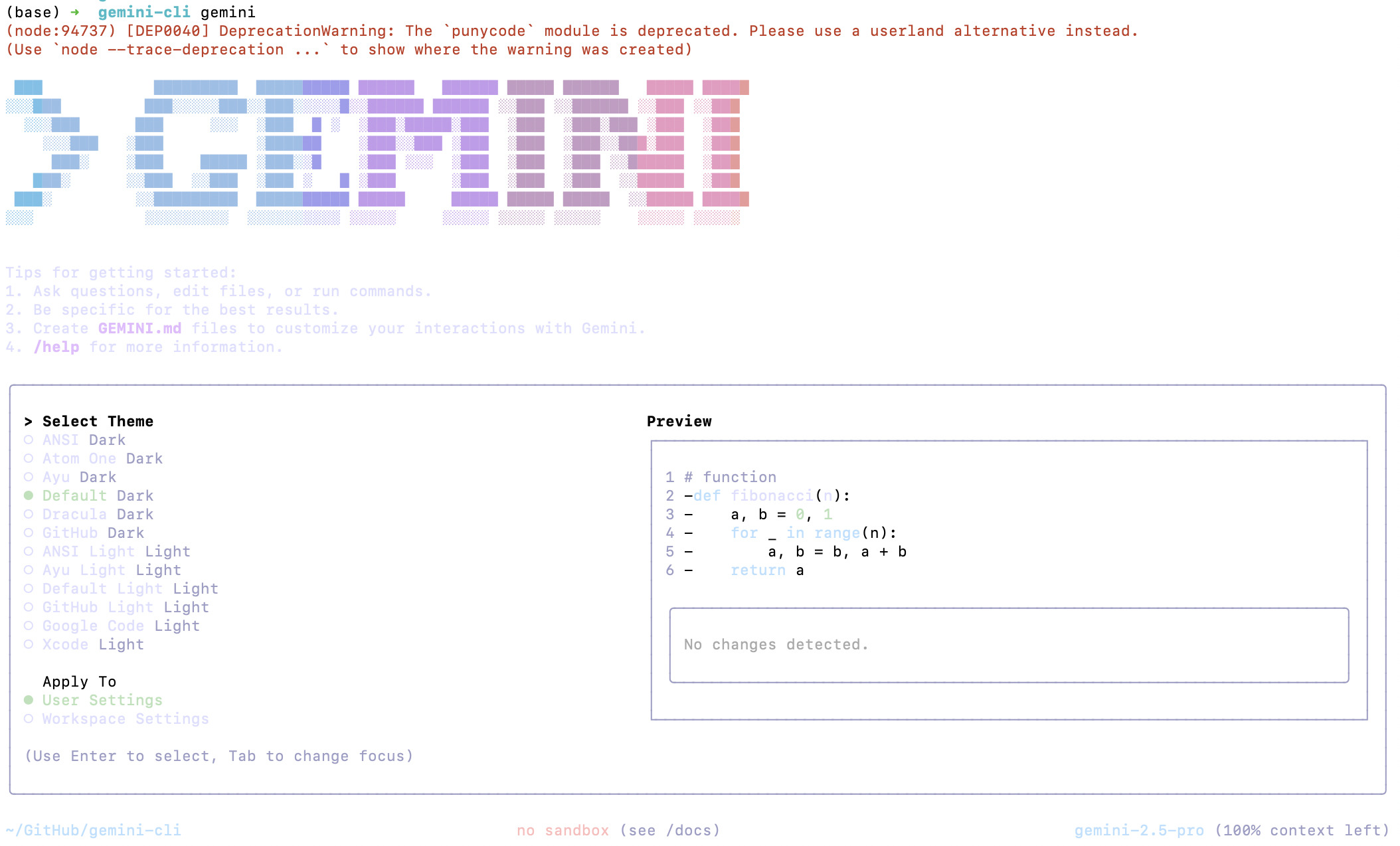 运行 Gemini CLI