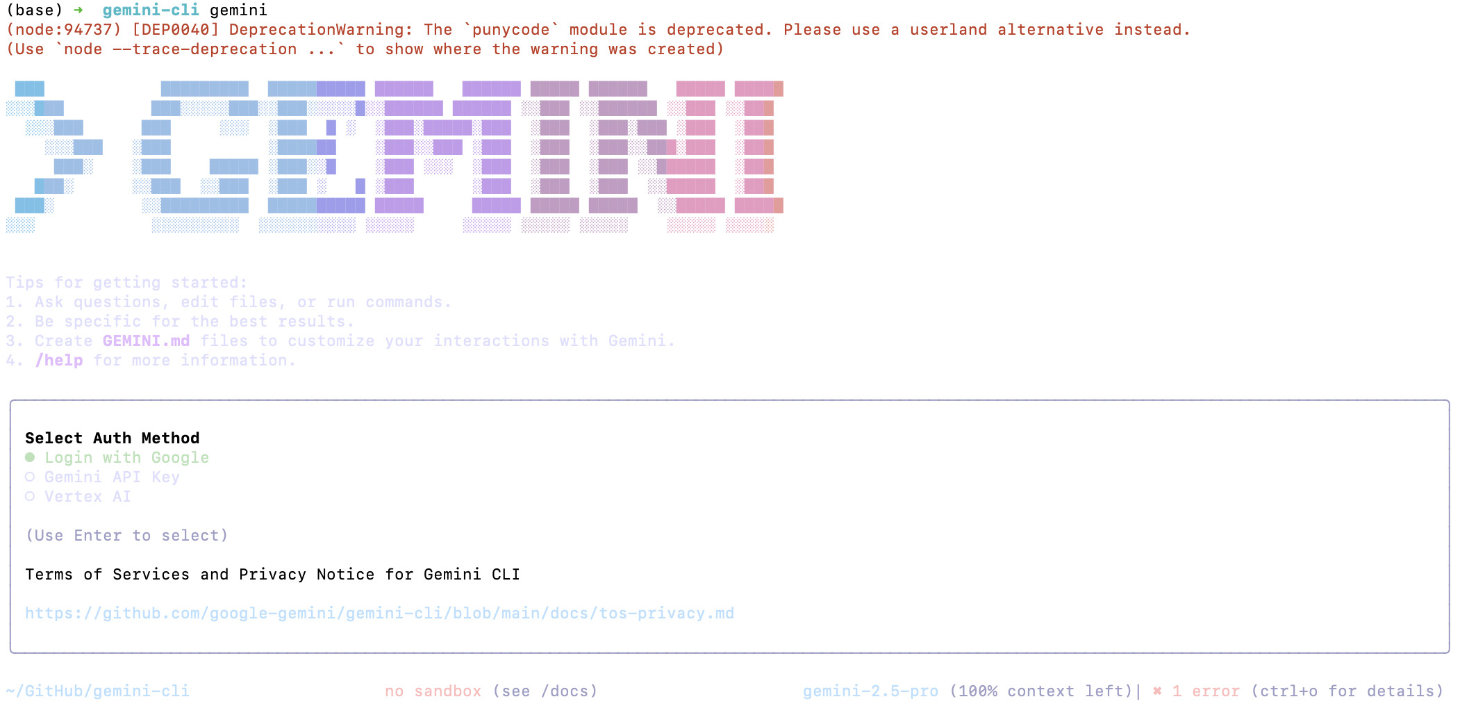 安装 Gemini CLI
