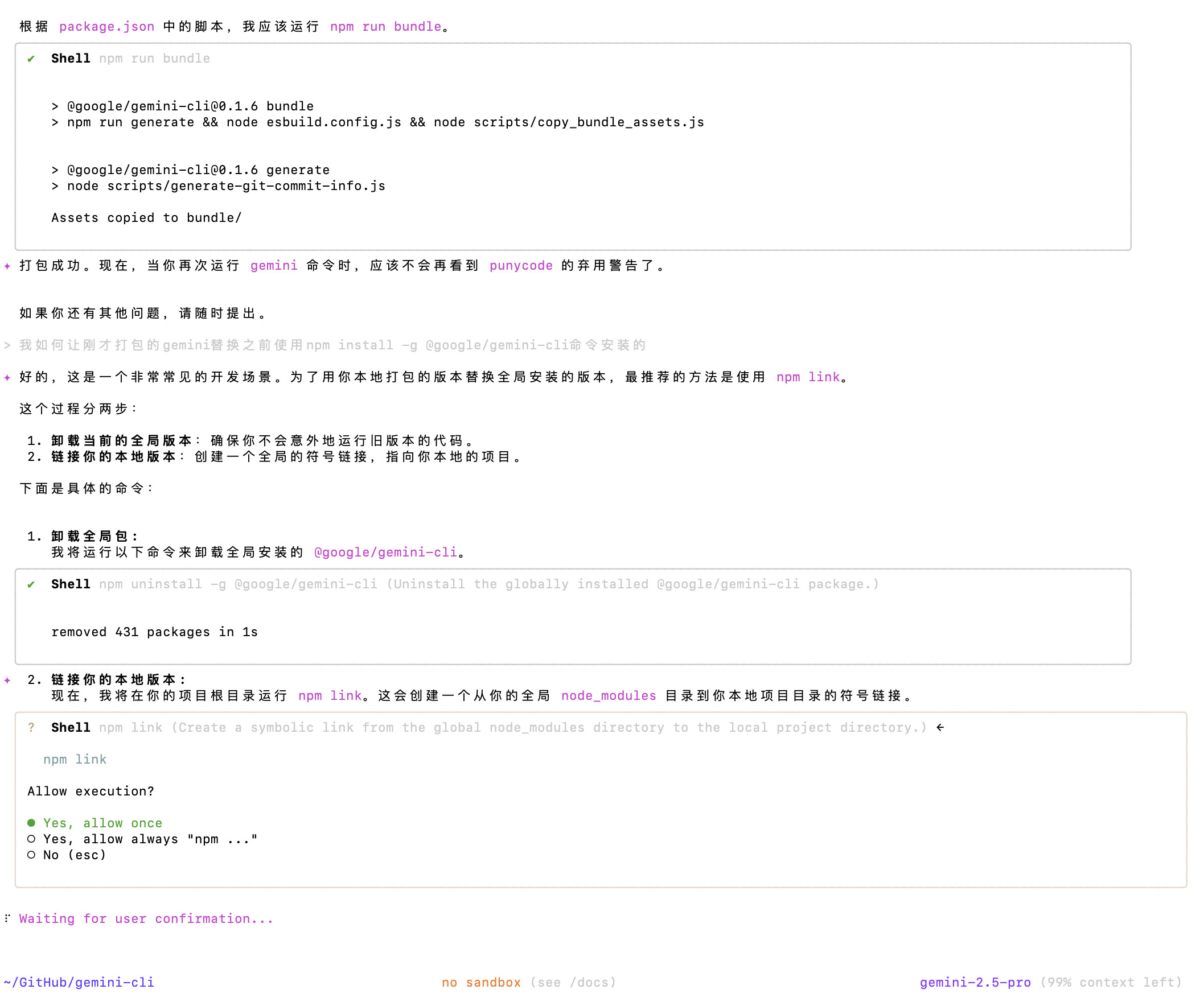 npm install -g @google/gemini-cli - 卸载
