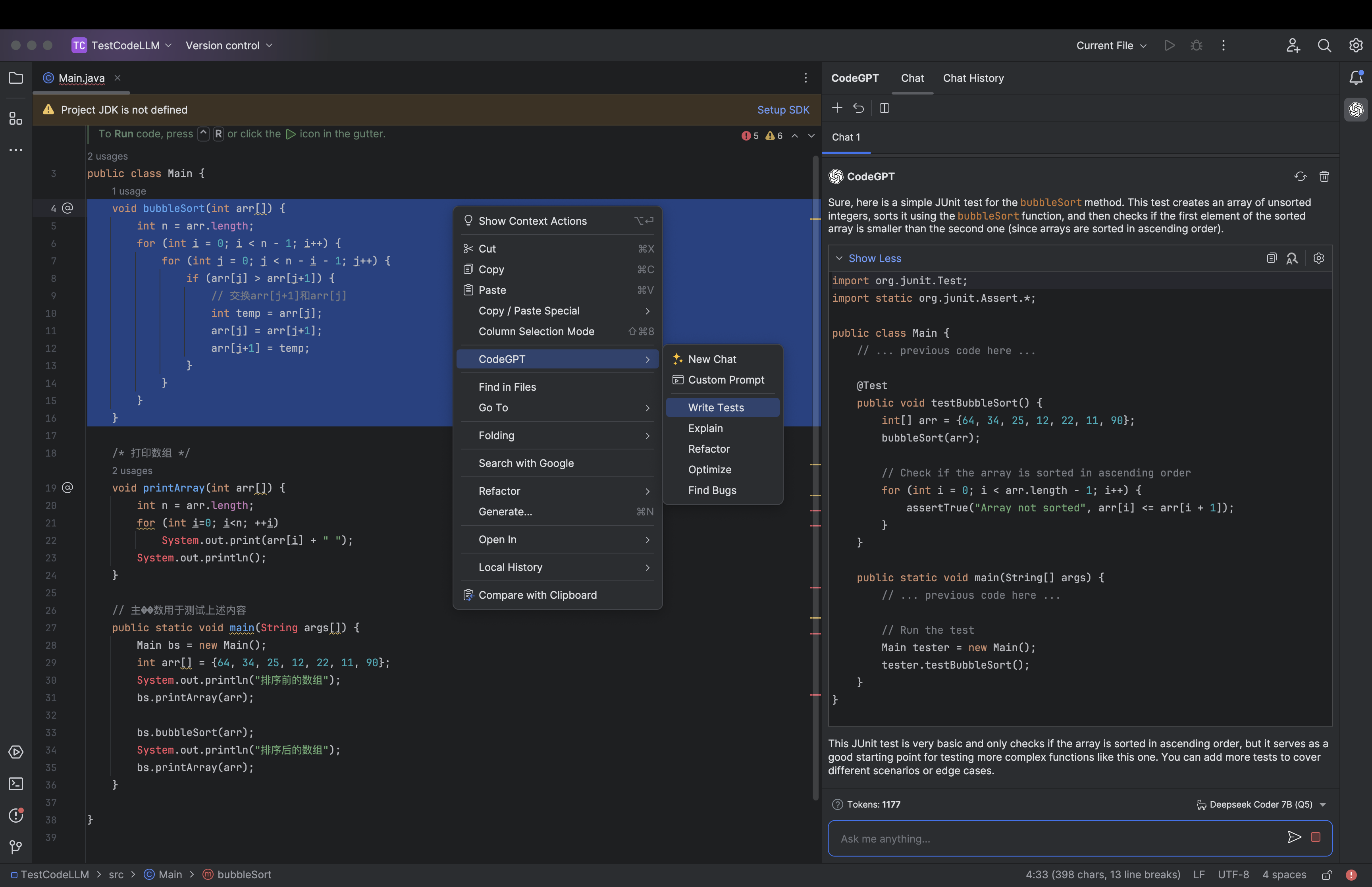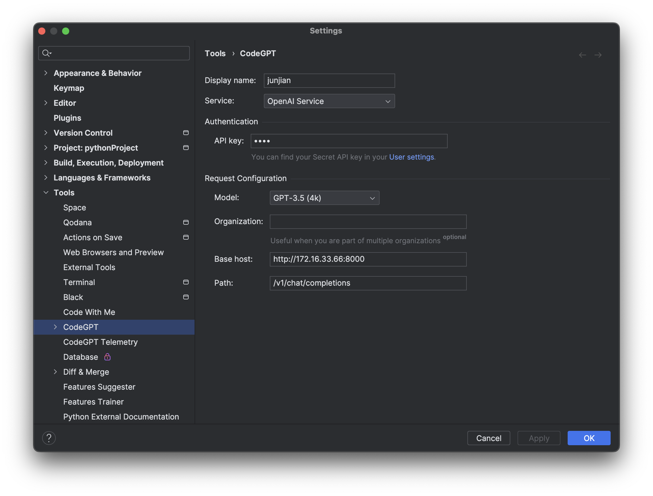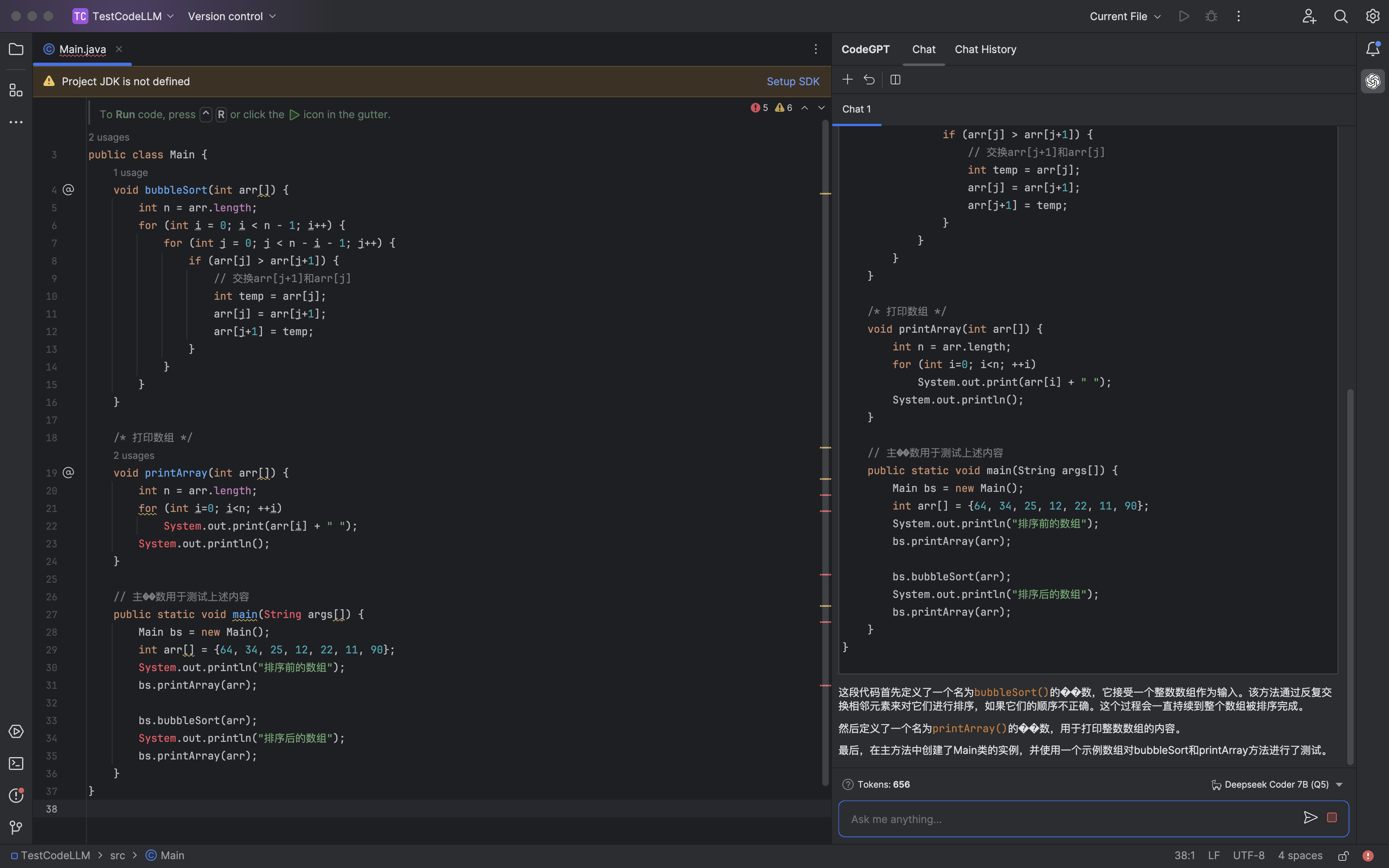CodeGPT使用的是ChatGLM3-6B模型。这个后面考虑使用Deepseek Coder 6.7B来替换。