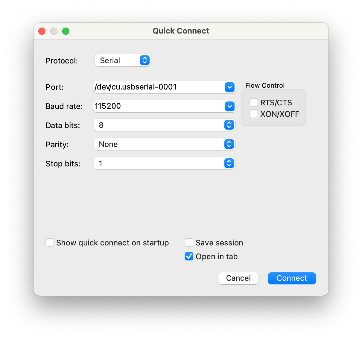 $ ls /dev/cu* /dev/cu.Bluetooth-Incoming-Port /dev/cu.usbserial-0001