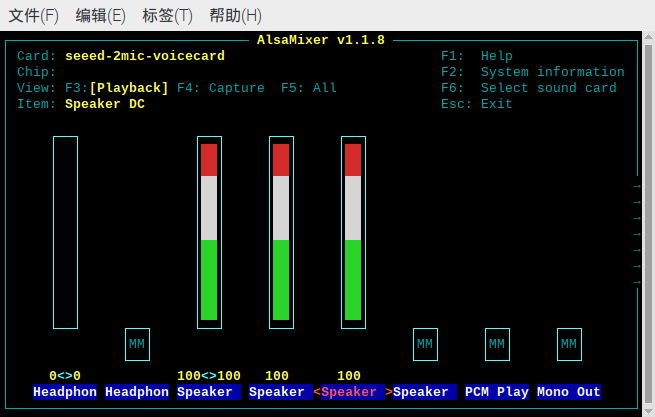 aplay -l**** List of PLAYBACK Hardware Devices **** card 0: b1 [bcm2835 HDMI 1], device 0: bcm2835 HDMI 1 [bcm2835 HDMI 1] Subdevices: 4/4 Subdevice #0: subdevice #0 Subdevice #1: subdevice #1 Subdevice #2: subdevice #2 Subdevice #3: subdevice #3 card 1: Headphones [bcm2835 Headphones], device 0: bcm2835 Headphones [bcm2835 Headphones] Subdevices: 4/4 Subdevice #0: subdevice #0 Subdevice #1: subdevice #1 Subdevice #2: subdevice #2 Subdevice #3: subdevice #3 card 2: seeed2micvoicec [seeed-2mic-voicecard], device 0: bcm2835-i2s-wm8960-hifi wm8960-hifi-0 [bcm2835-i2s-wm8960-hifi wm8960-hifi-0] Subdevices: 1/1 Subdevice #0: subdevice #0