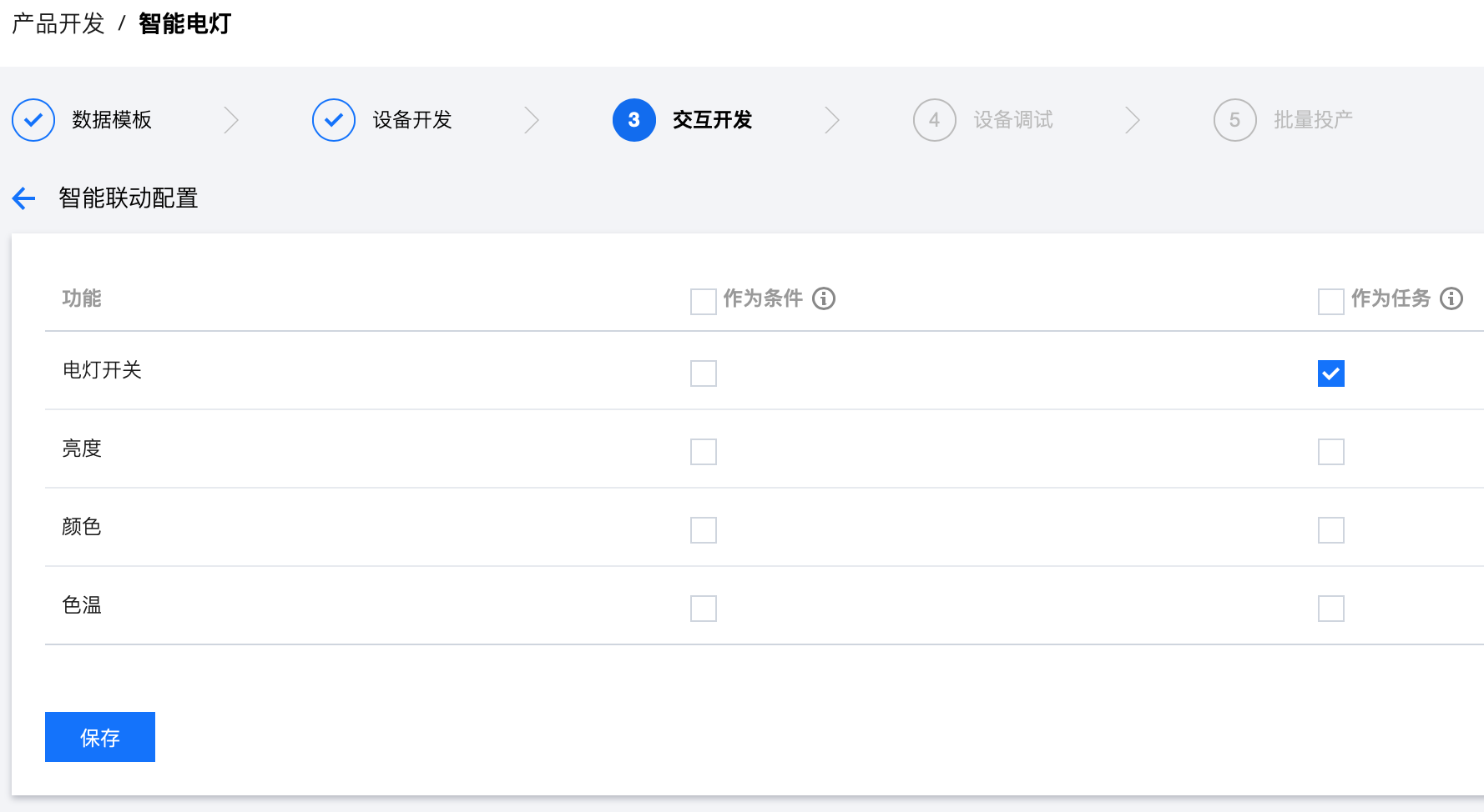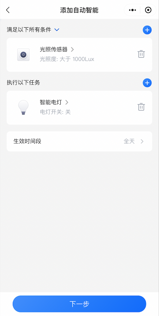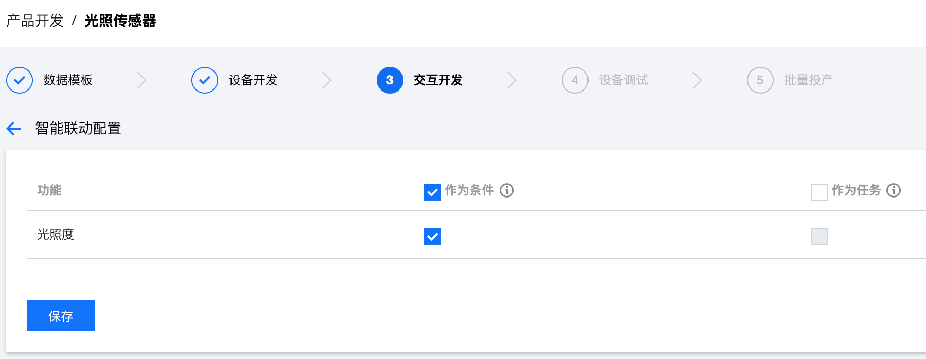 基于腾讯云物联网开发平台的场景联动(智能电灯和光照传感器) 2021-02-24 less than 1 minute read 产品智能联动配置 登录腾讯云物联网开发平台控制台 智能电灯 光照传感器 场景智能联动 在微信中打开腾讯连连小程序,通过选择添加智能-自动智能。 设置条件和任务 通过光照值设置了两个联动任务 参考资料 腾讯云物联网开发平台入门 Previous Next