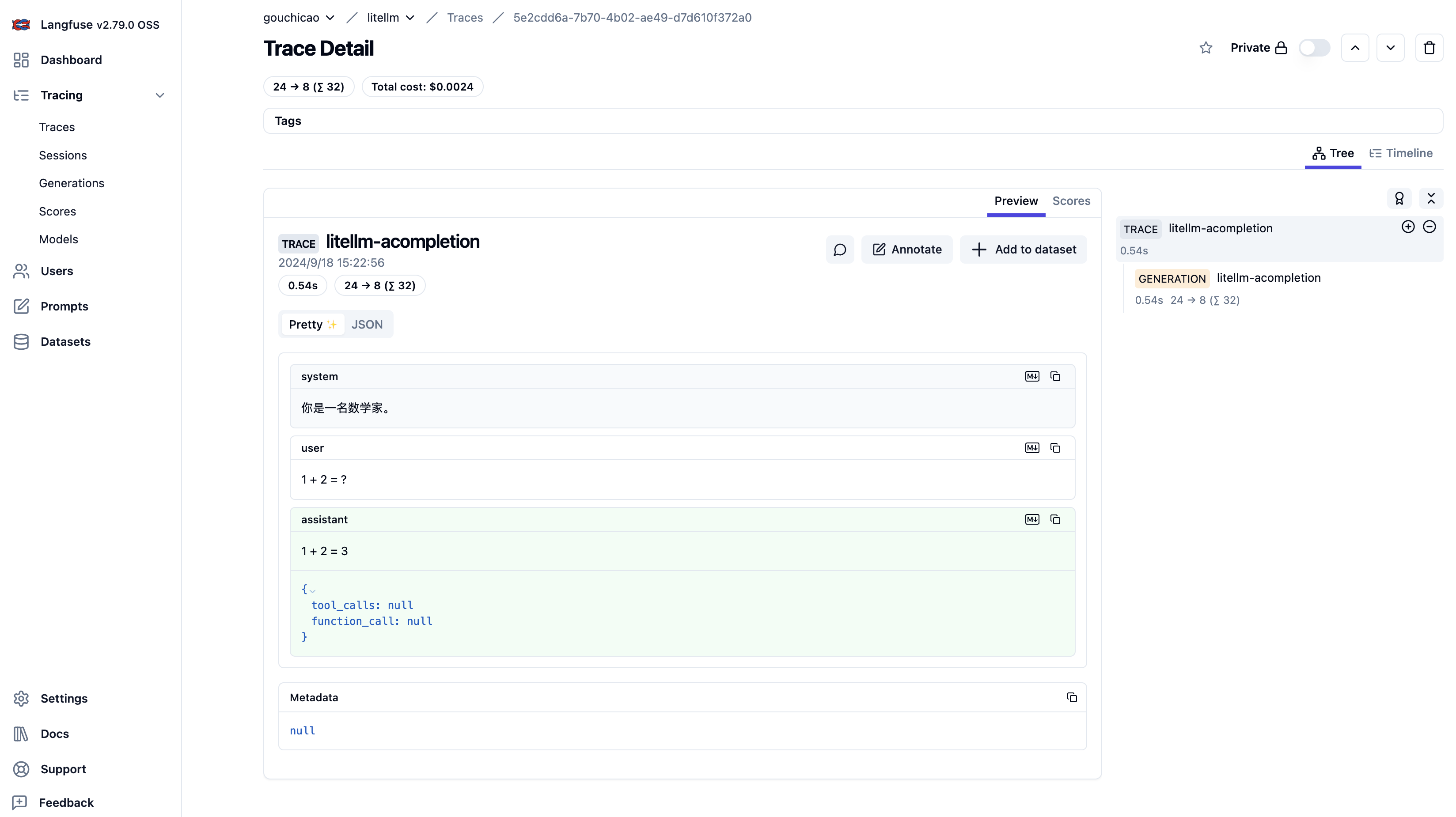 - Langfuse UI:检查和调试复杂的日志(演示,跟踪)