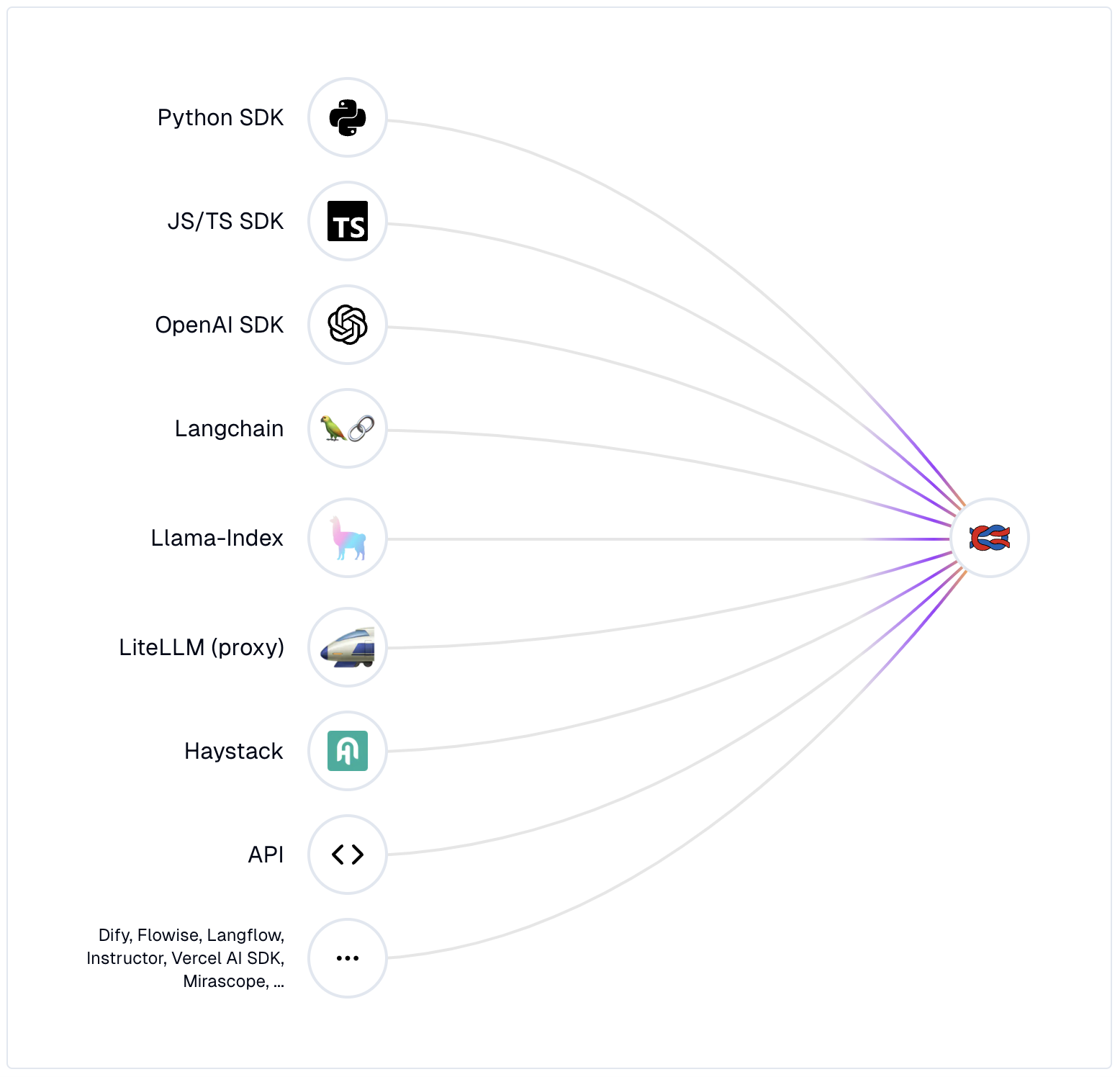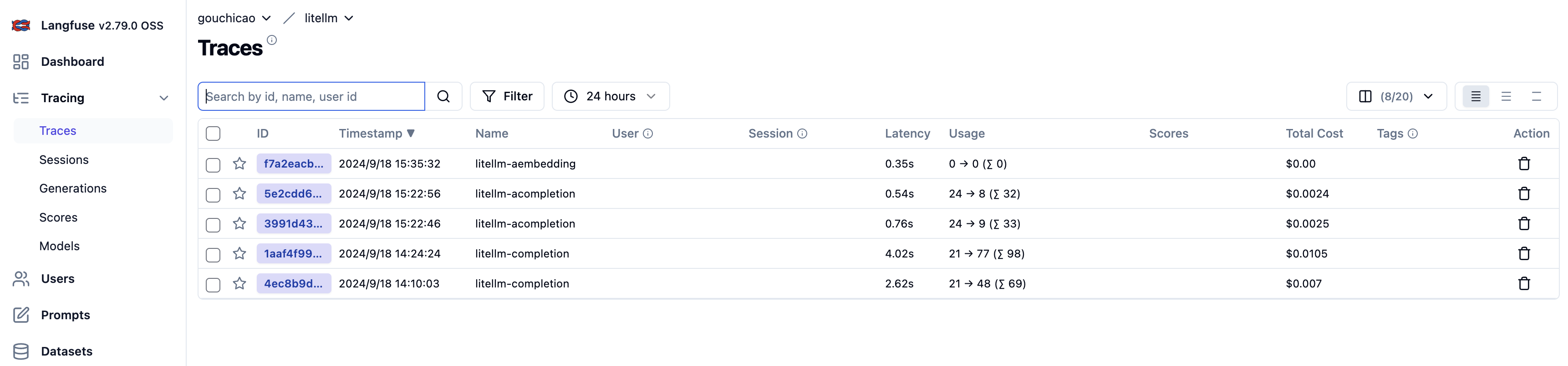 - LLM Observability(可观察性):为您的应用程序进行仪表化,并开始将跟踪数据传输到 Langfuse(快速入门,集成跟踪)