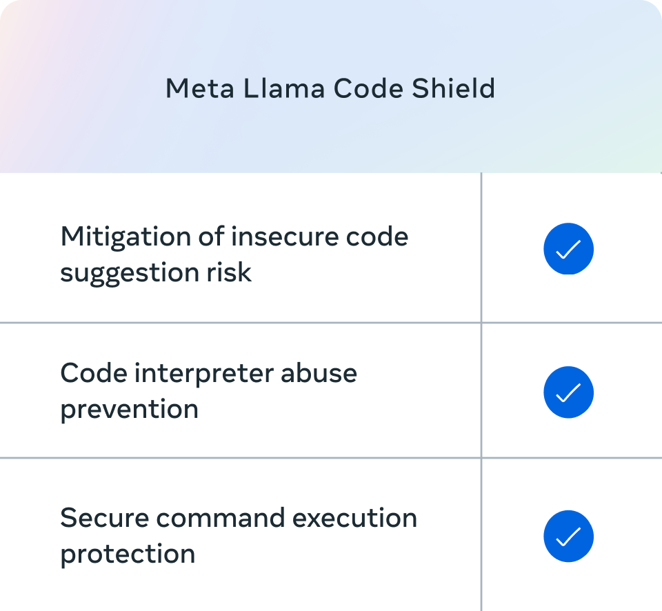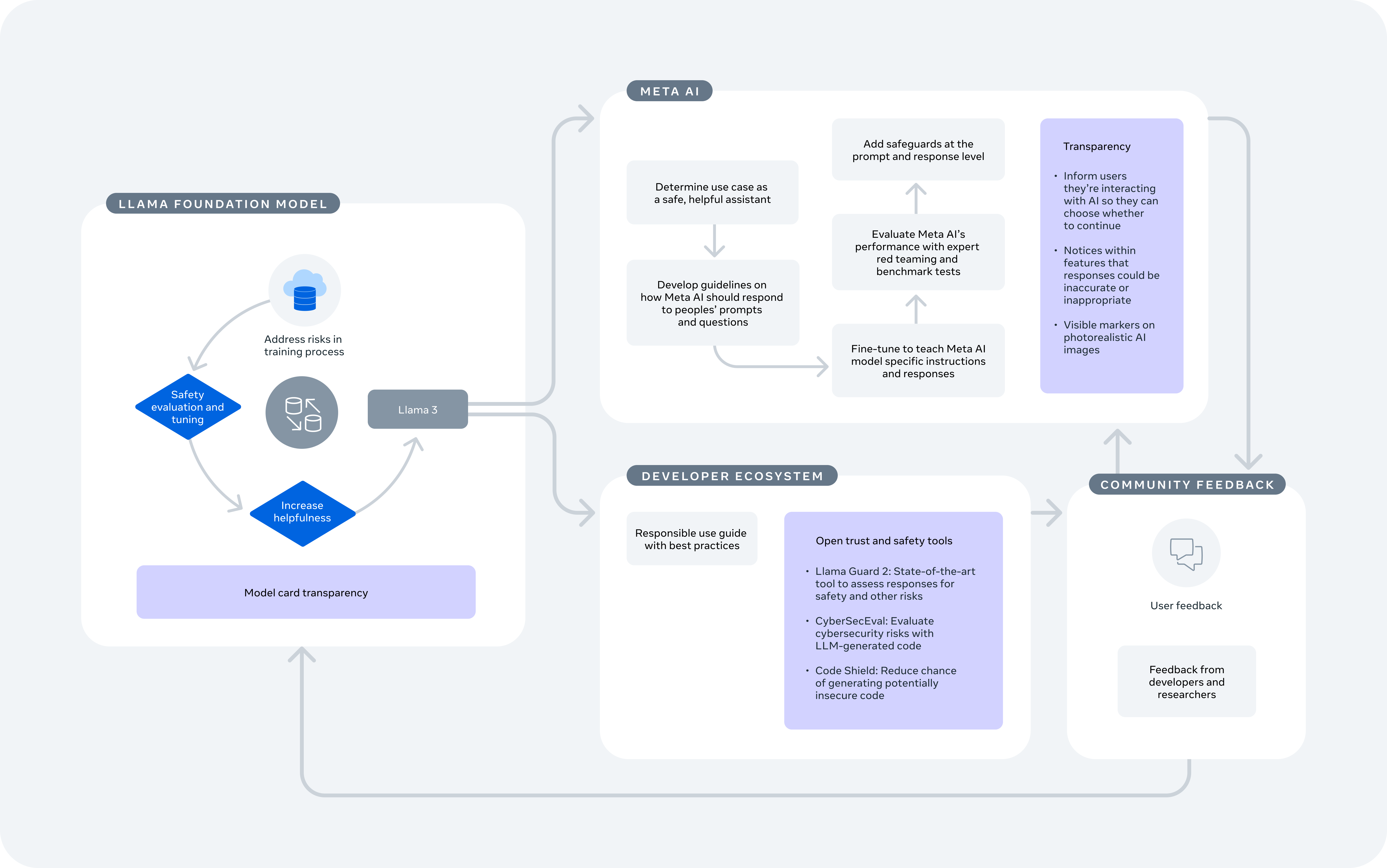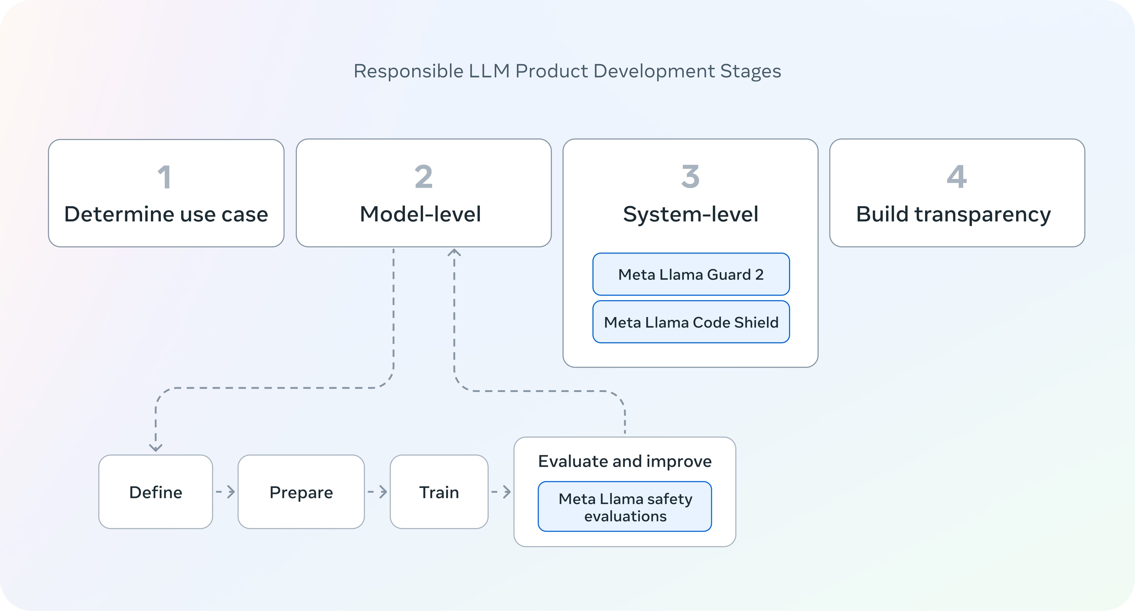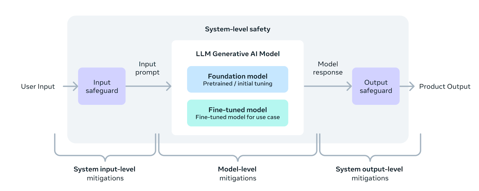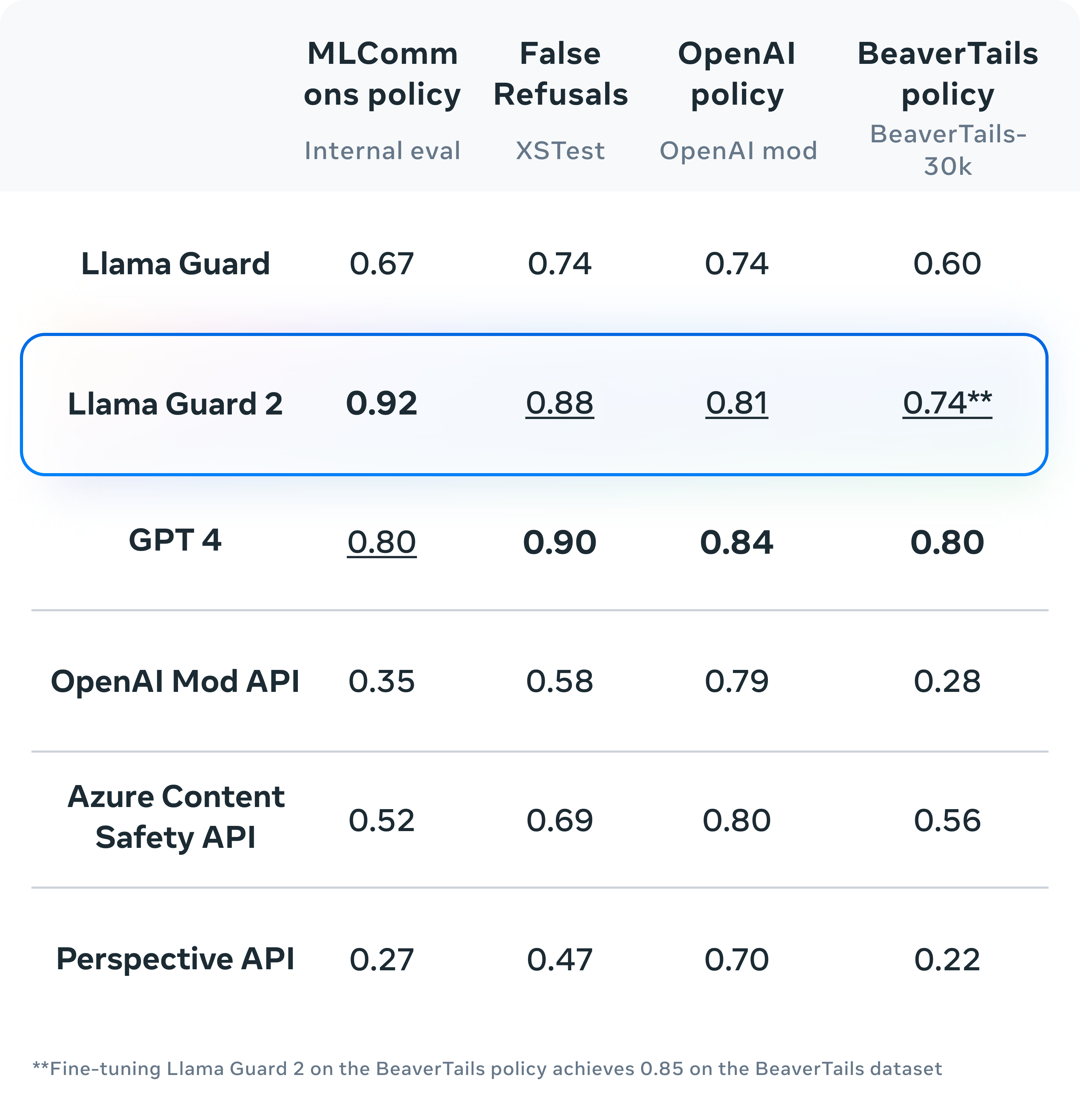 - Llama Guard 2: Llama Guard 2 是基于 Llama 3 8B 微调的,为生产环境设计的,能够对大语言模型的输入(即提示)和响应进行分类,以便识别潜在的不安全内容。