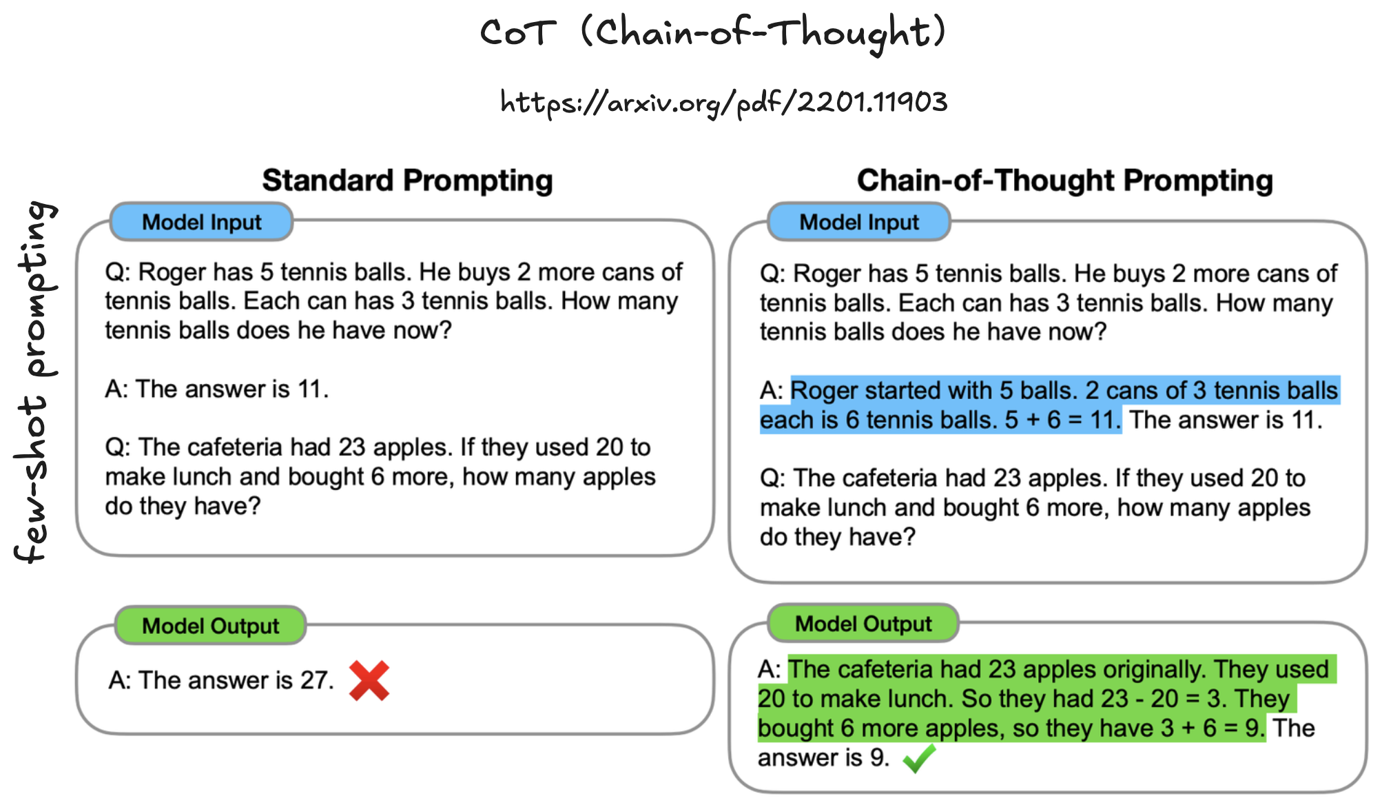- CoT: 让模型“想清楚”过程,按步骤推理。