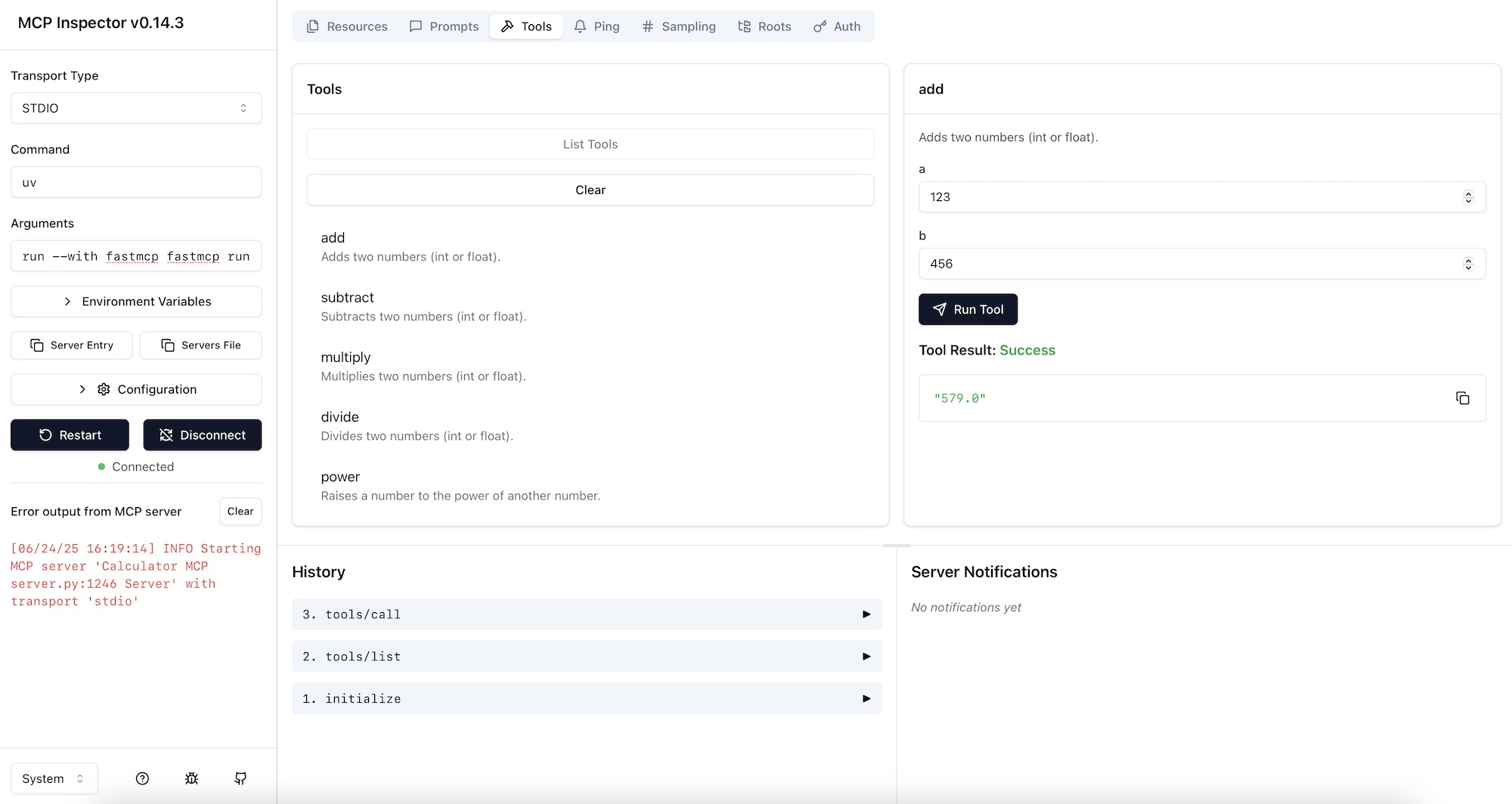 [06/24/25 16:32:35] INFO Starting MCP server 'Calculator MCP Server' with transport 'stdio' server.py:1168