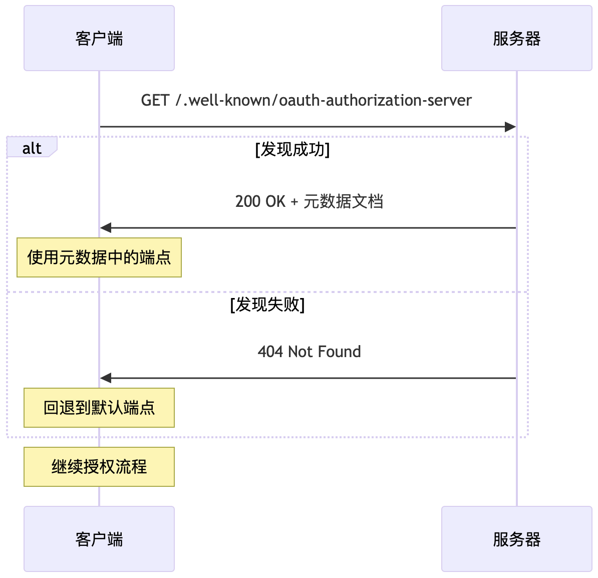我们强烈建议所有客户端实现元数据发现。这减少了用户手动提供端点或客户端回退到定义的默认值的需求。