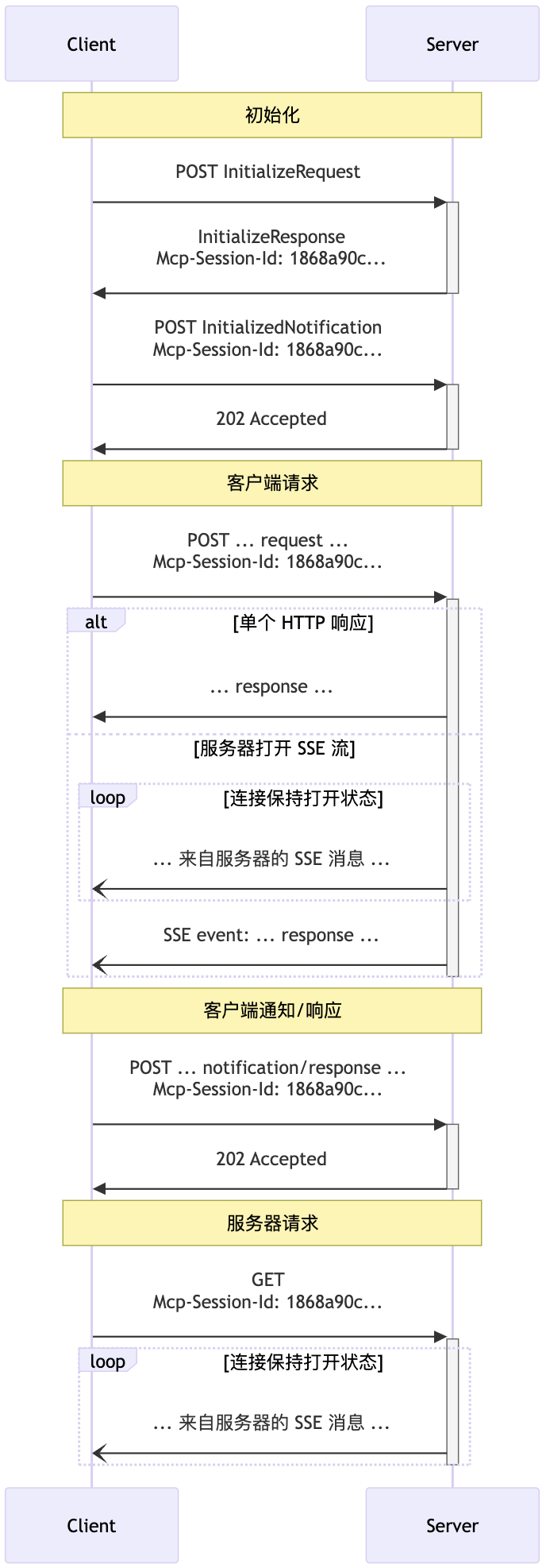 初始化请求不得作为 JSON-RPC 批处理的一部分,因为在初始化完成之前无法进行其他请求和通知。这也允许与不明确支持 JSON-RPC 批处理的先前协议版本向后兼容。