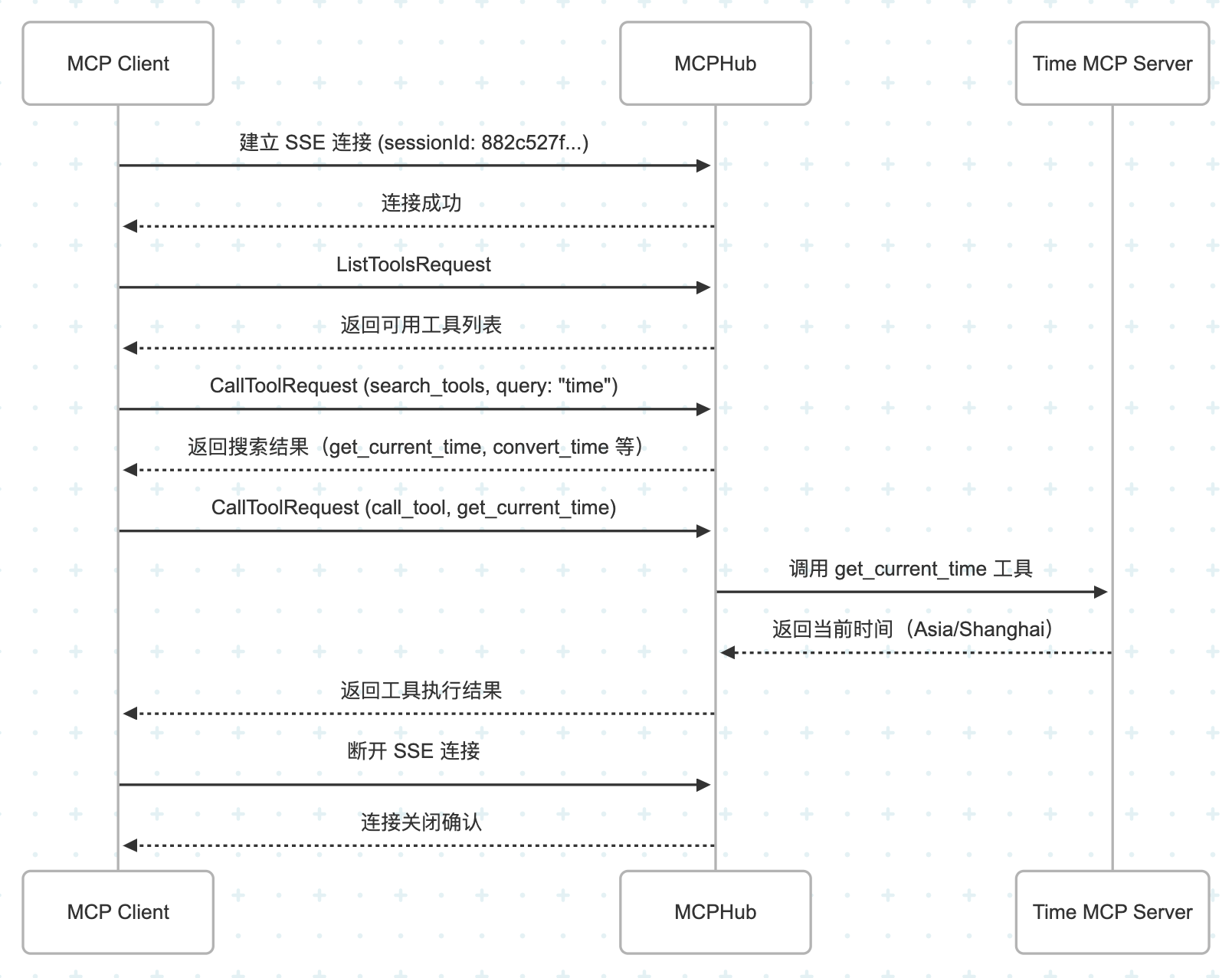 MCP Client->>MCPHub: CallToolRequest (call_tool, get_current_time)