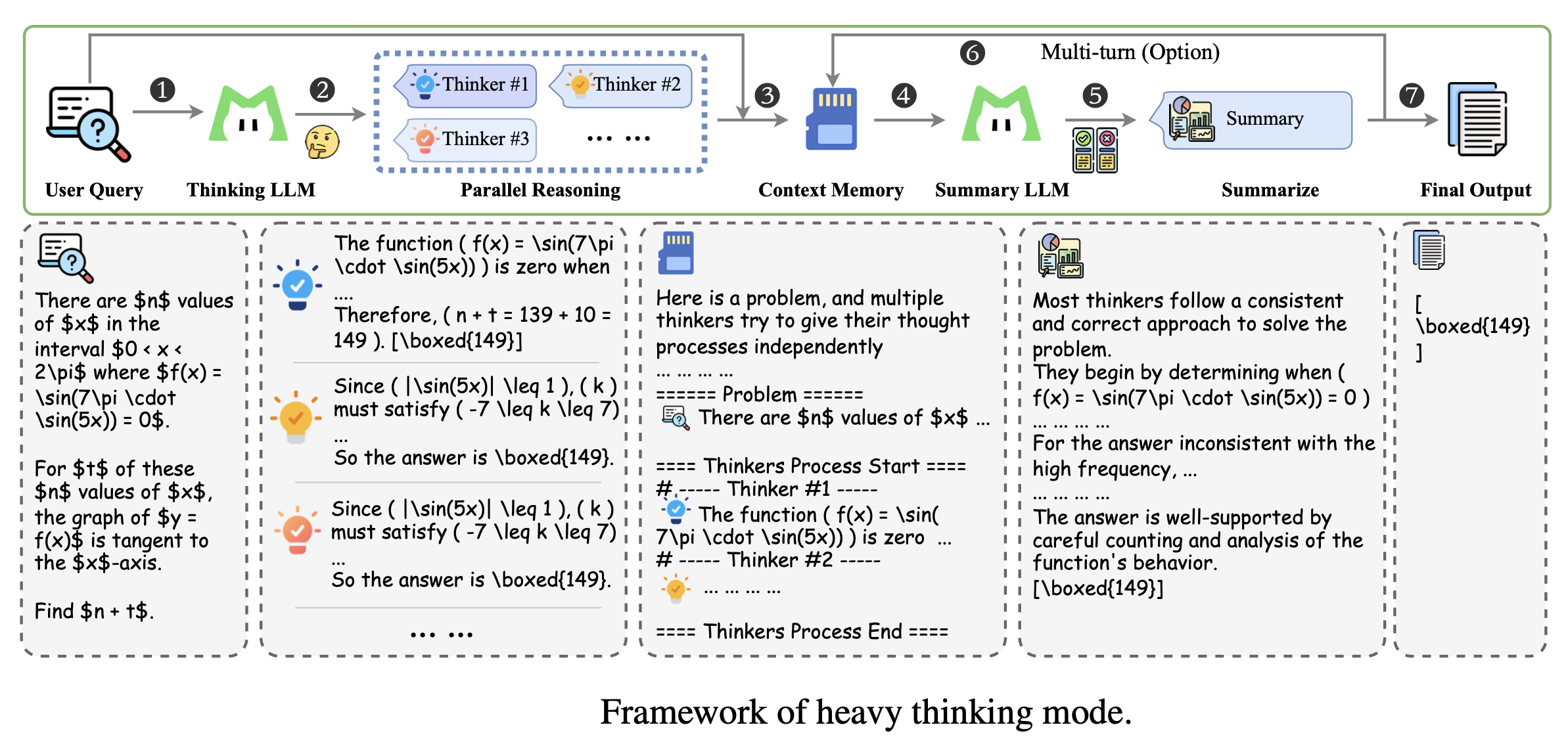 - 特定提示模板 (Specific Prompt Template):用于组织并行轨迹的排列组合,引导总结模型进行高效的答案聚合或精炼。