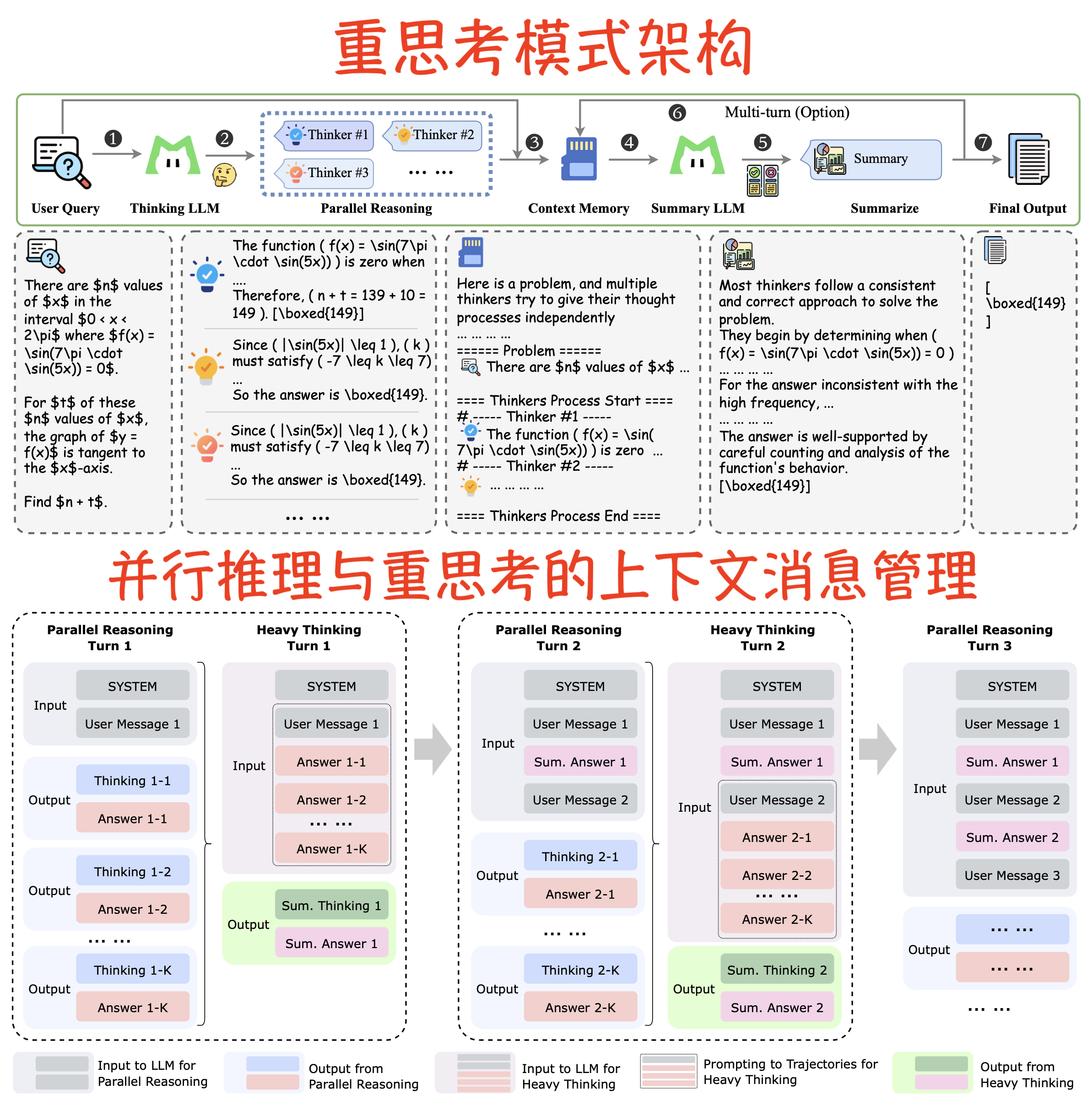 - 之前的“总结答案 1”和新的“用户消息 2”共同构成新的输入,传递给下一轮的并行推理。