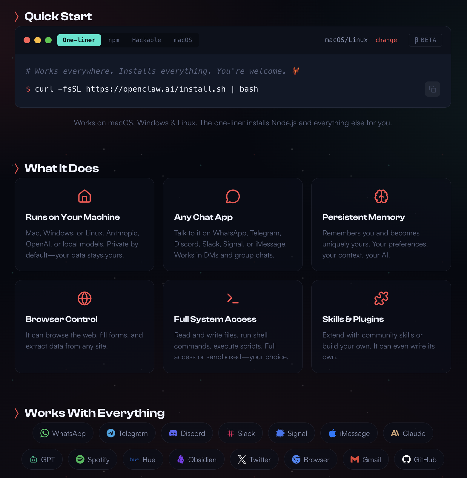 🦞 OpenClaw 是一个本地优先(Local-First)、高度自治、基于 Markdown 记忆管理的 AI Agent(智能体)系统。