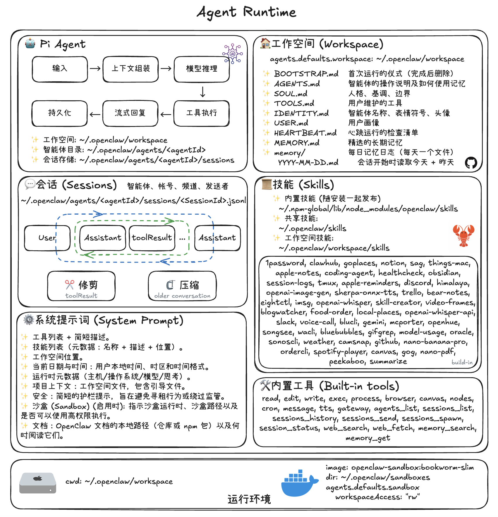 MEMORY,AGENTS):通过“每日日志”与“长期记忆”实现跨会话的知识积累,而非每次新鲜唤醒。 - 伙伴与工具 (
