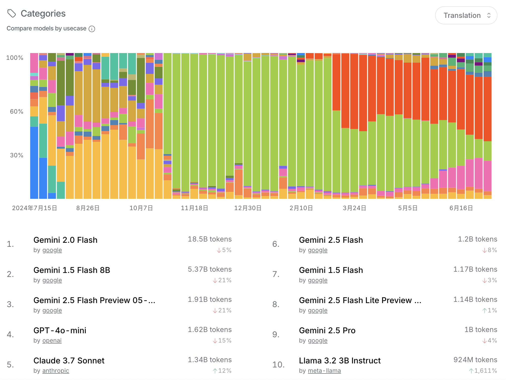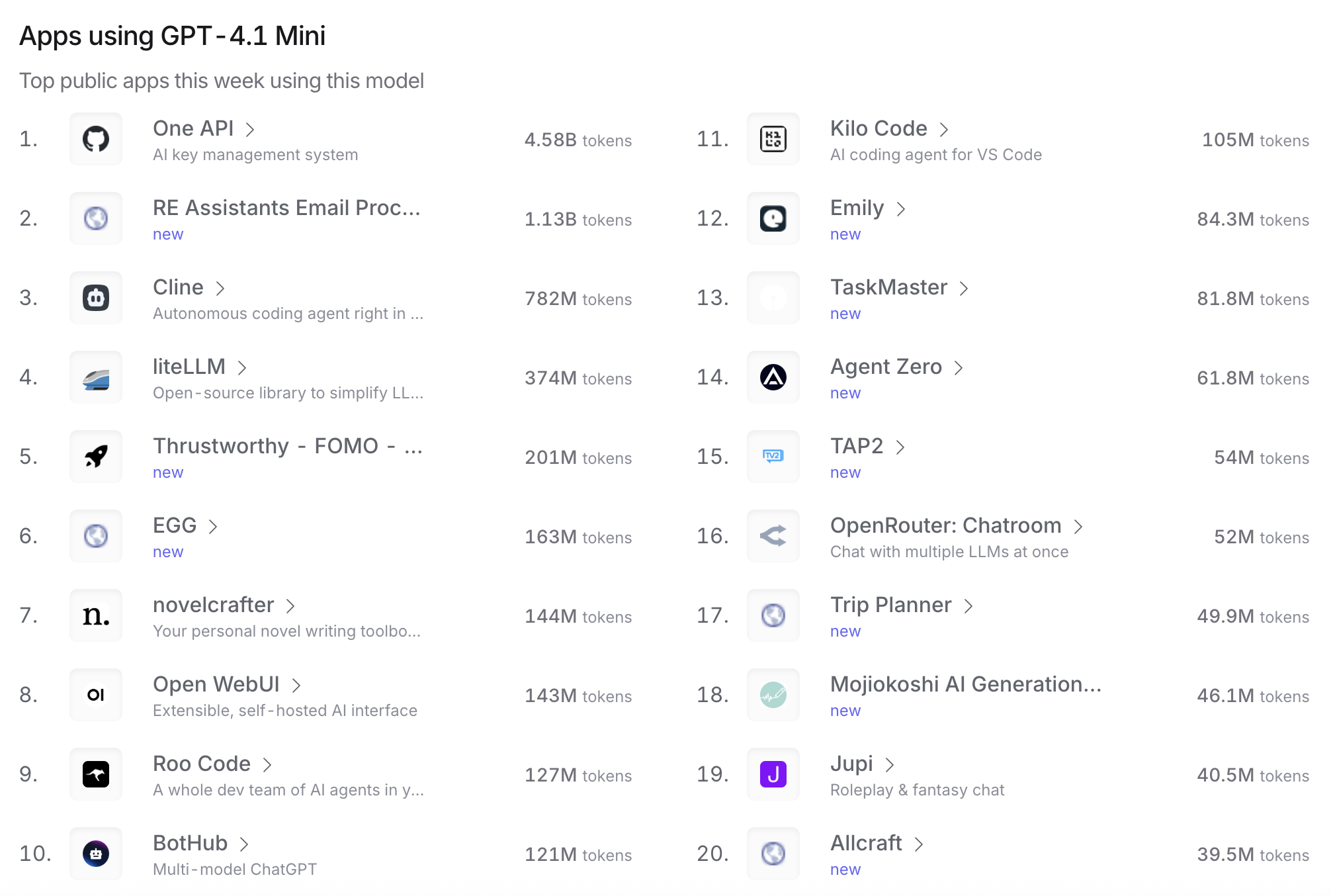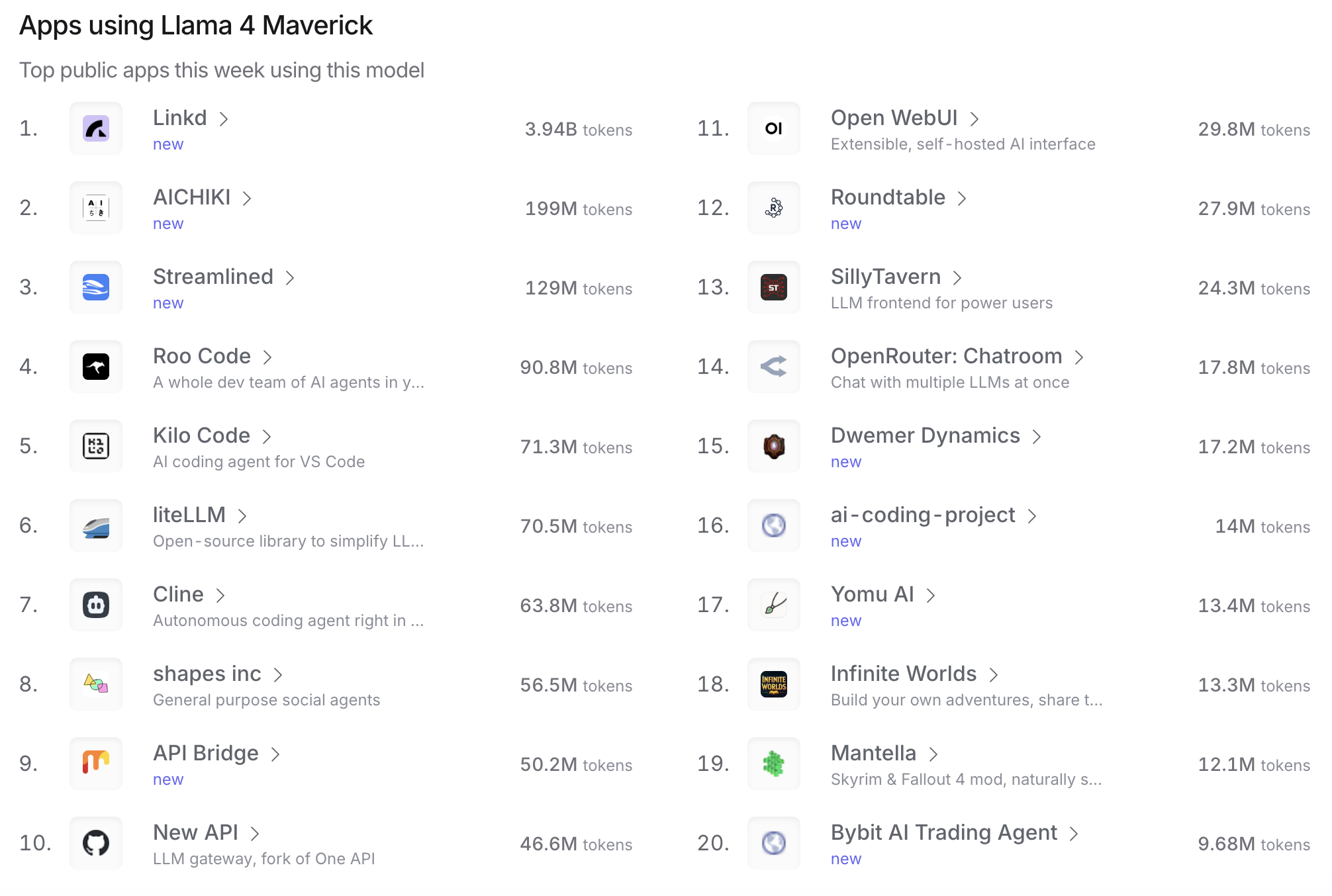 Llama 4 Maverick / Llama 3.3 70B Instruct: Llama家族在OpenRouter上也有不俗的表现,特别是在一些智能代理和自动化工具的应用中。比如Llama 4 Maverick在Linkd(智能链接)中表现出色。