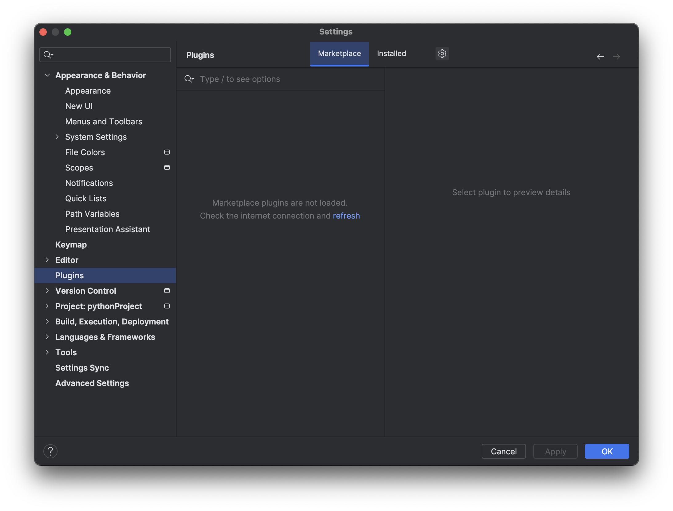 使用 PyCharm 安装插件,发现找不到插件,需要手动下载插件安装包,然后通过 PyCharm 安装本地插件。