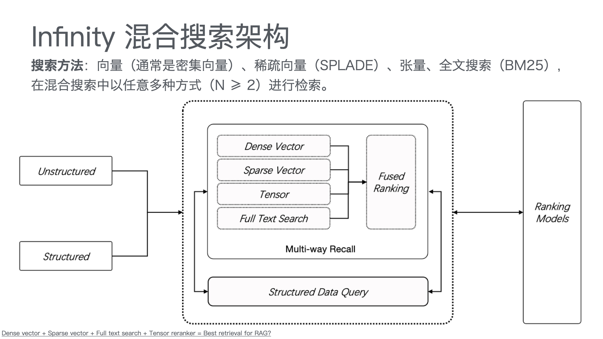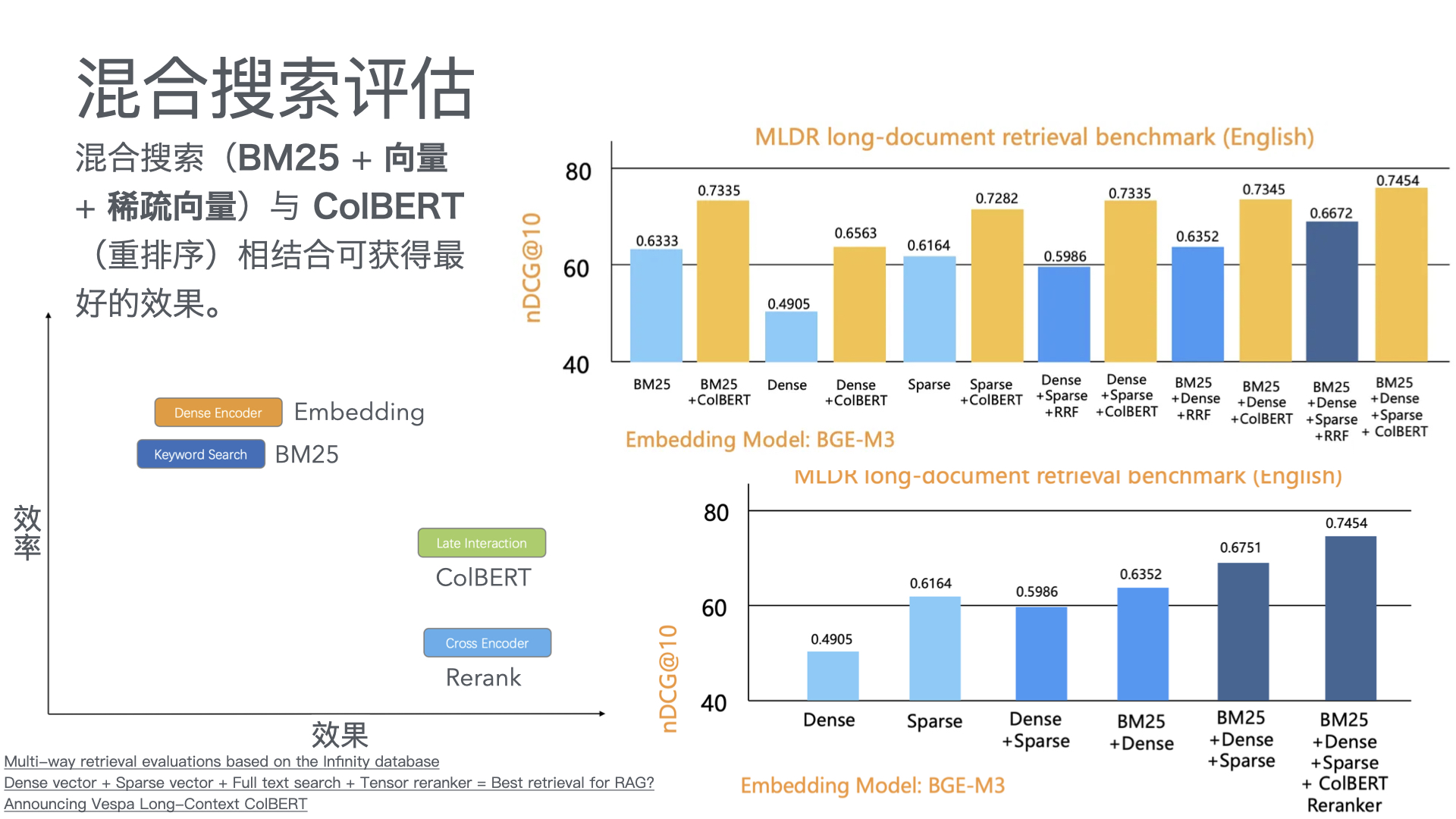 - Dense vector + Sparse vector + Full text search + Tensor reranker = Best retrieval for RAG?