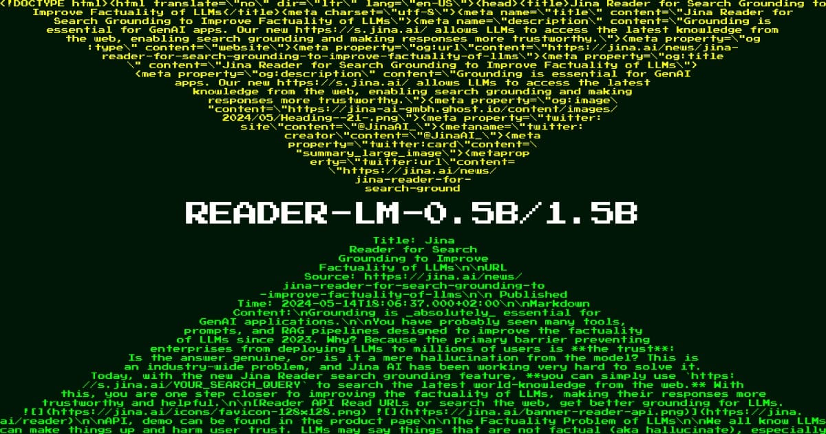 Reader-LM-0.5B 和 Reader-LM-1.5B 是受 Jina Reader 启发的两个新型小型语言模型,旨在将来自开放网络的原始、嘈杂的 HTML 转换为干净的 markdown。