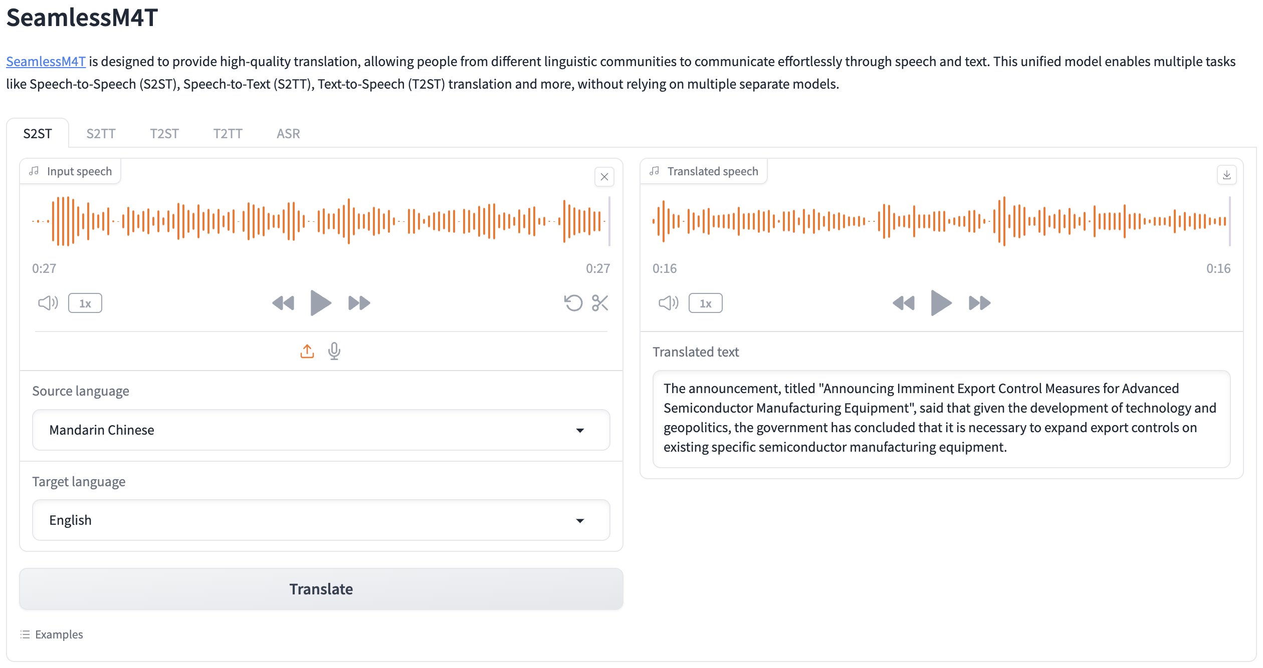 - Meta Seamless 2: Working examples