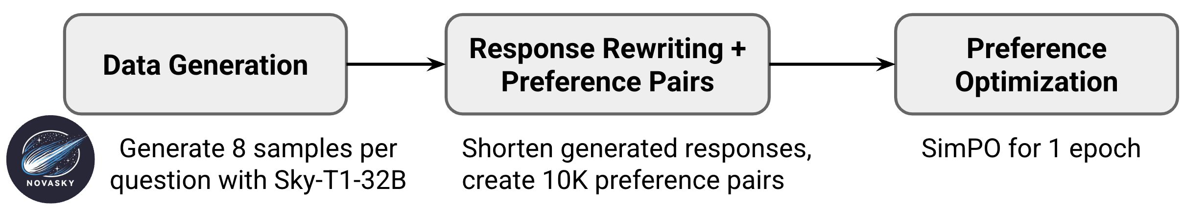 我们的训练过程包括三个主要阶段:数据生成、响应重写和偏好优化。