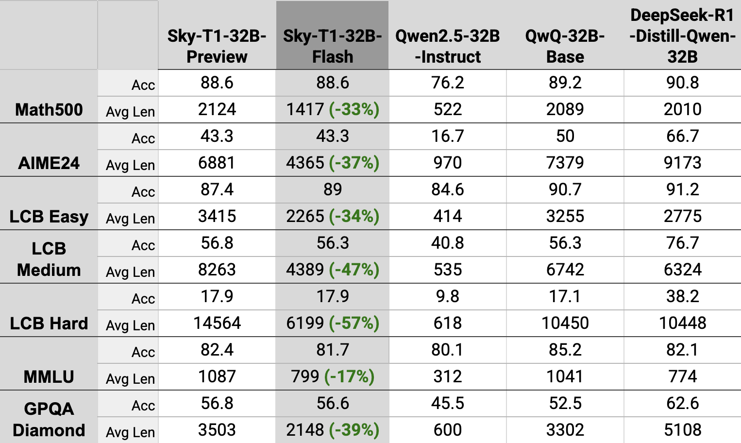 我们推出 Sky-T1-32B-Flash,这是一个可以将生成长度减少高达 50% 但保持准确性的推理模型。