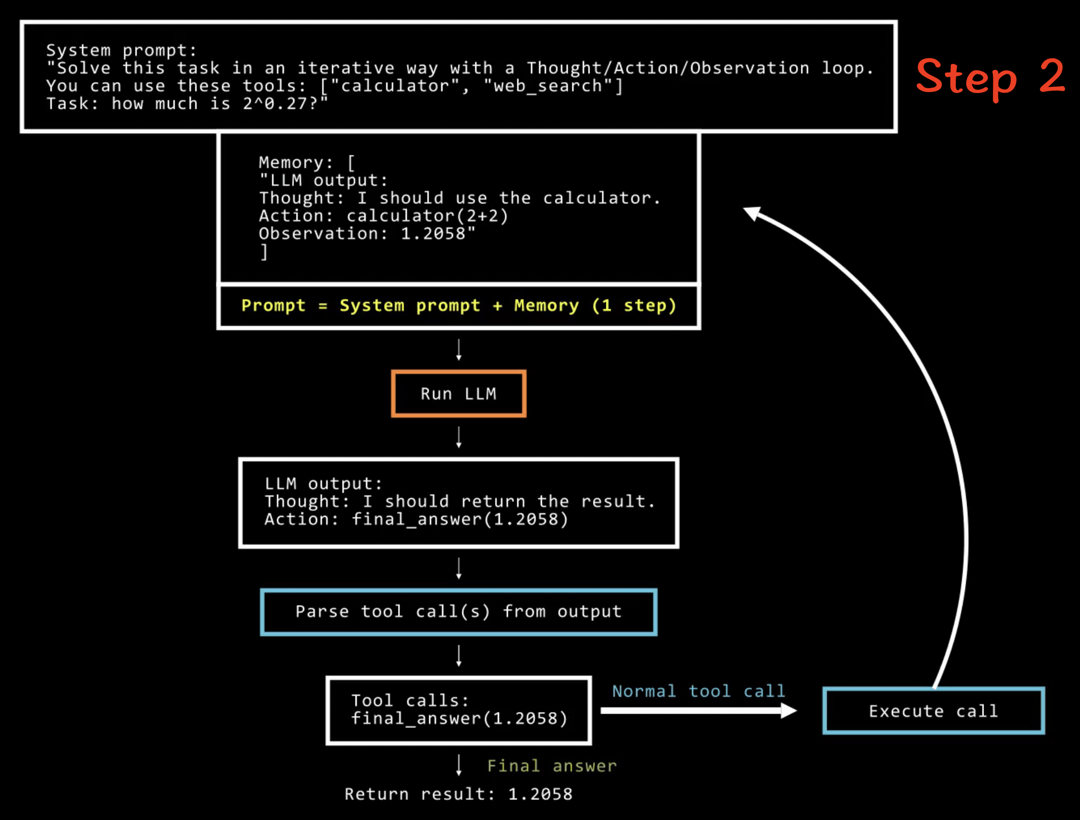 smolagents 中的所有代理都基于单一的 MultiStepAgent 类,它是 ReAct 框架的抽象。