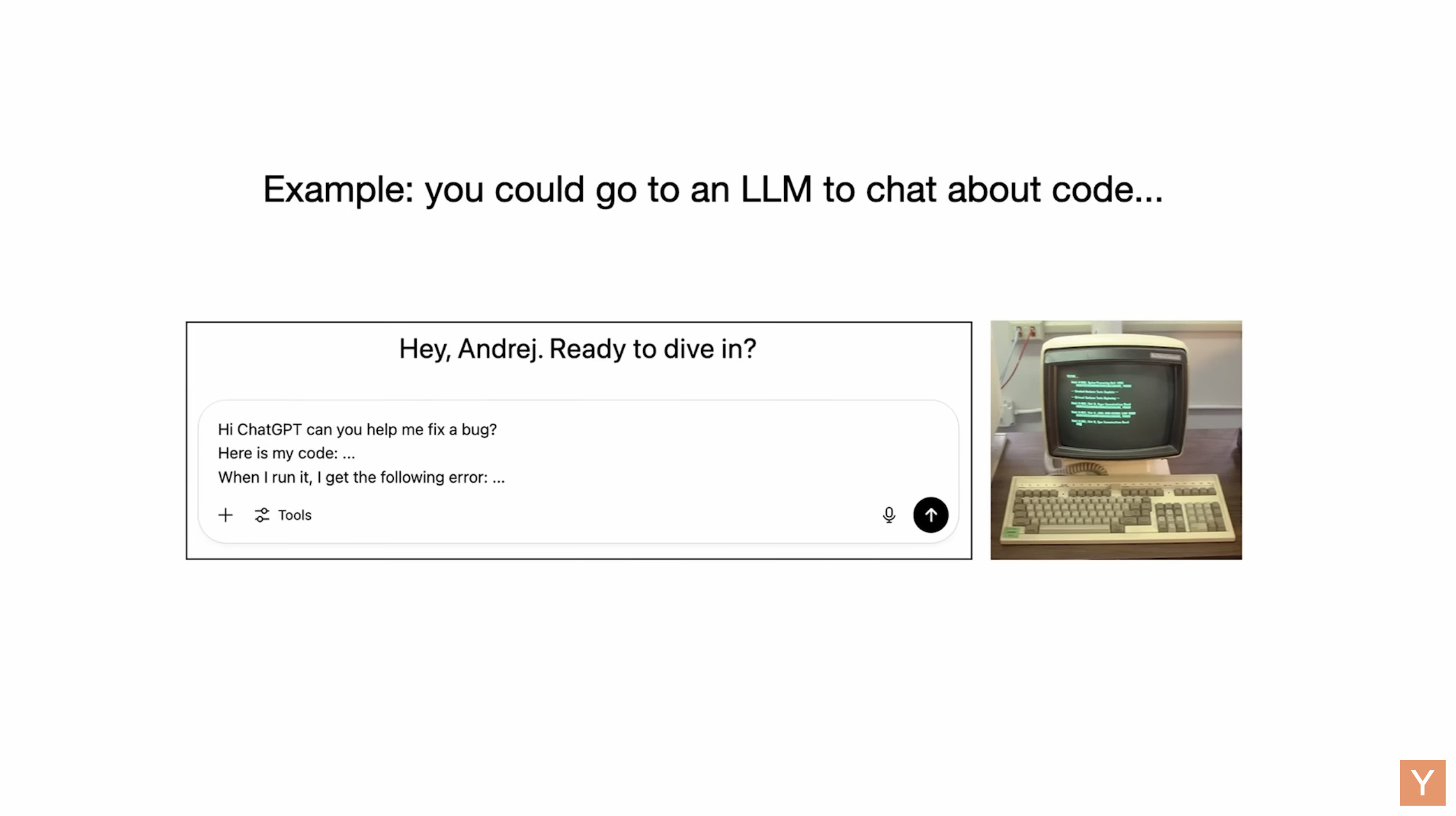- Software 1.0 tools “classical computer” (1.0版本软件工具“经典计算机”):