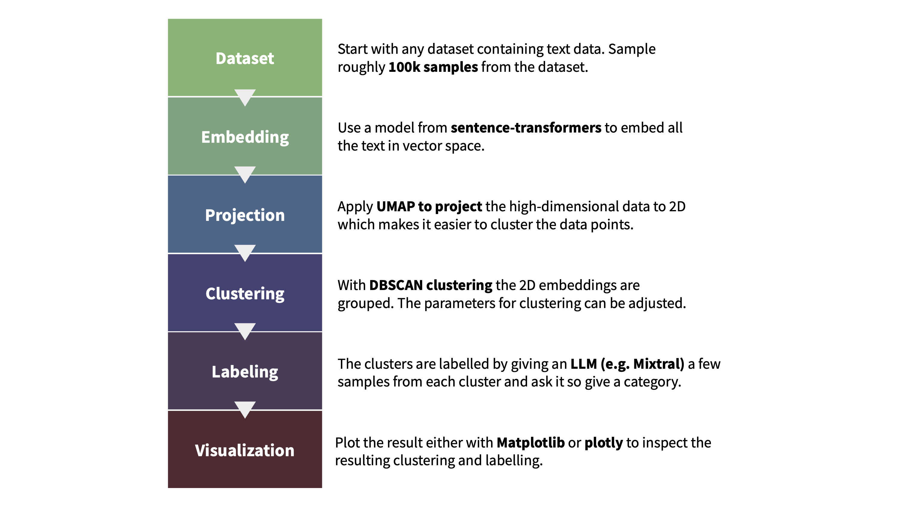 我们使用 text-clustering 代码库来对 Cosmopedia 提示中使用的网络数据进行主题聚类。下图说明了聚类及对生成的簇进行标注的流程。我们还要求 Mixtral 在标注时为簇打一个教育性得分 (满分 10 分) ; 这有助于后面我们进行主题检查。你可以在此 演示 中找到网络数据的每个簇及其得分。