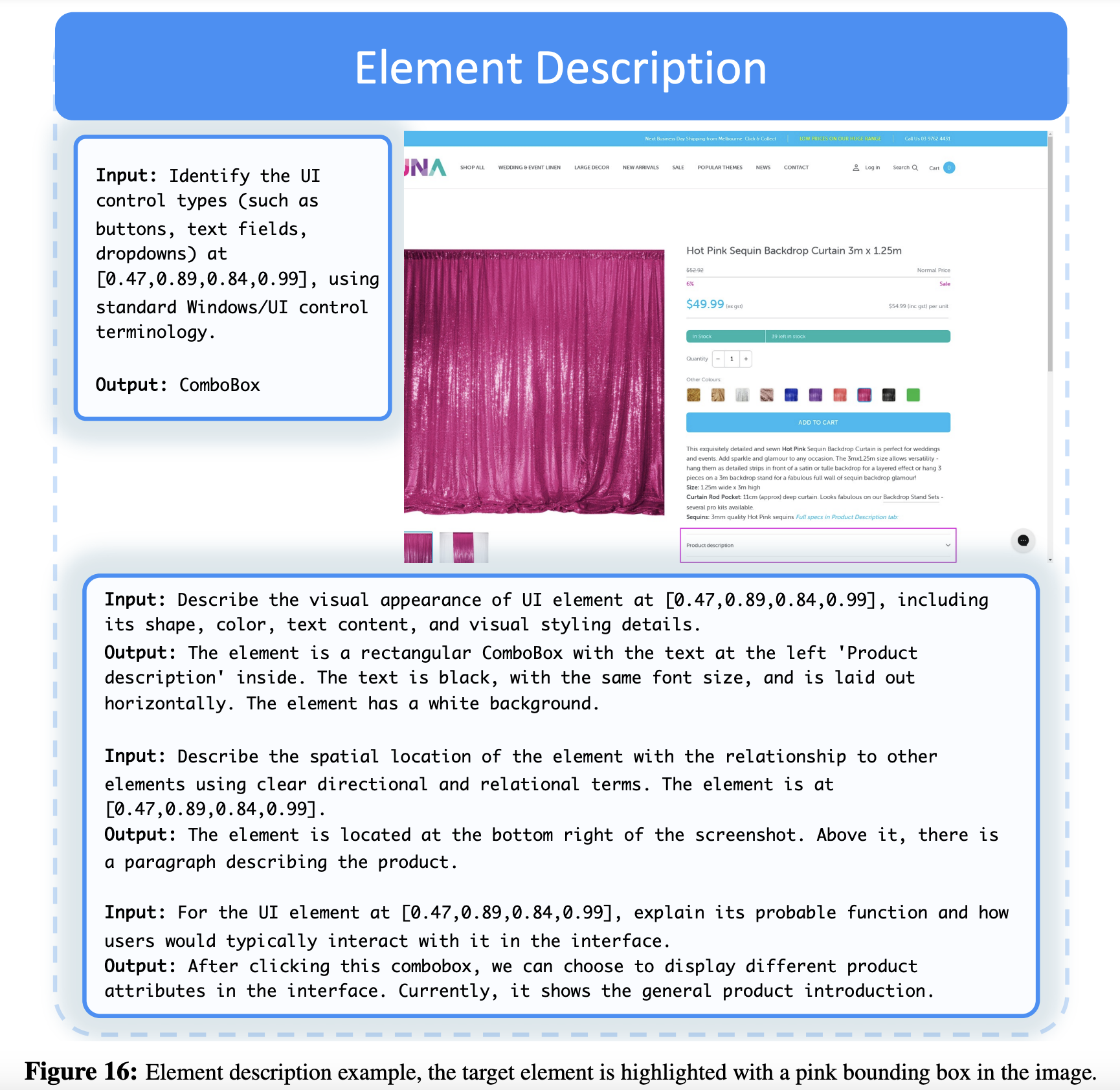图16:元素描述示例,图像中的目标元素用粉色边框突出显示。
