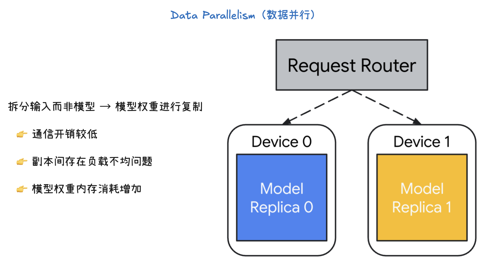 - 一个请求路由器(Request Router)负责将输入的请求(或数据批次)分发给不同的设备。