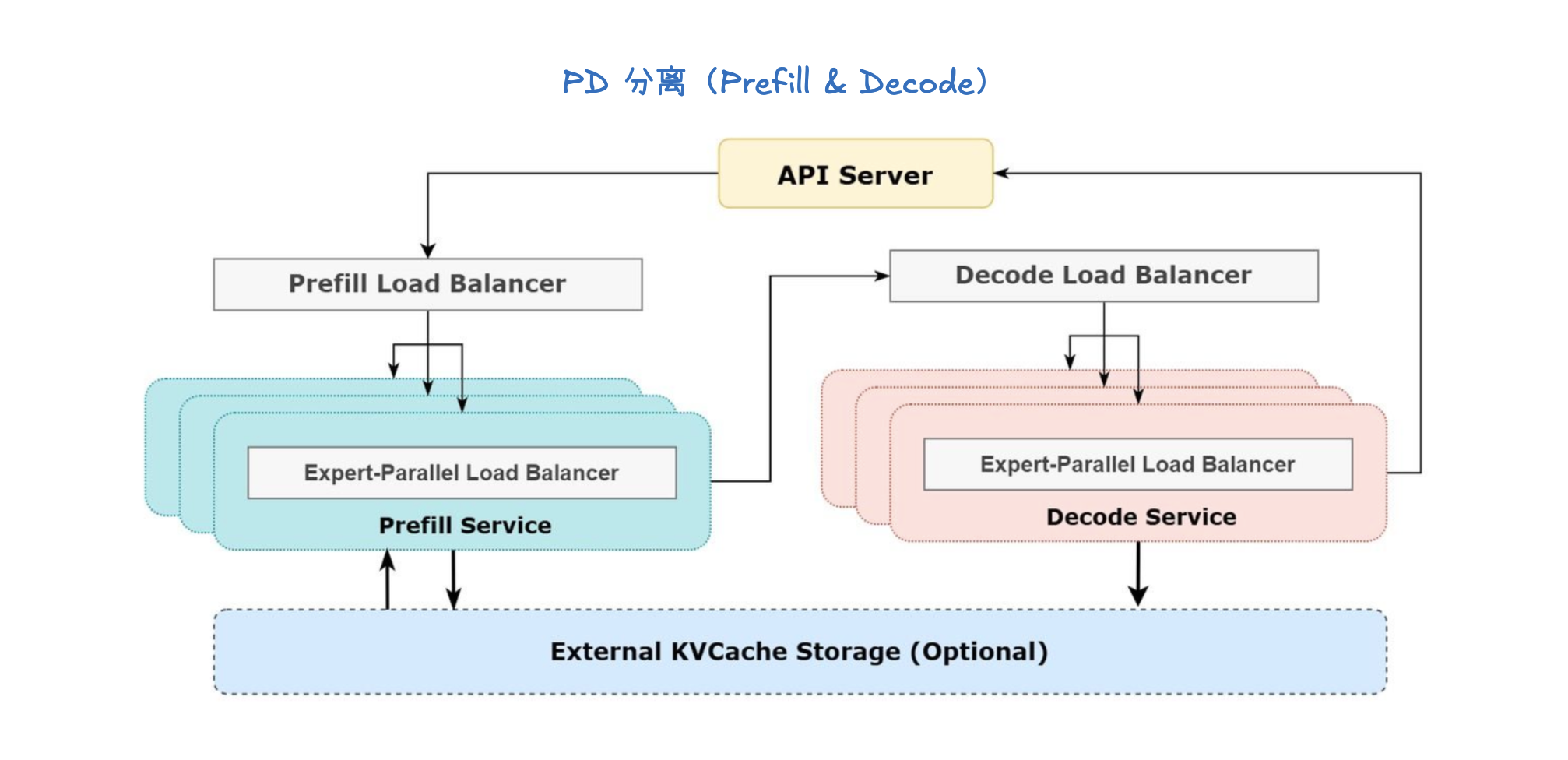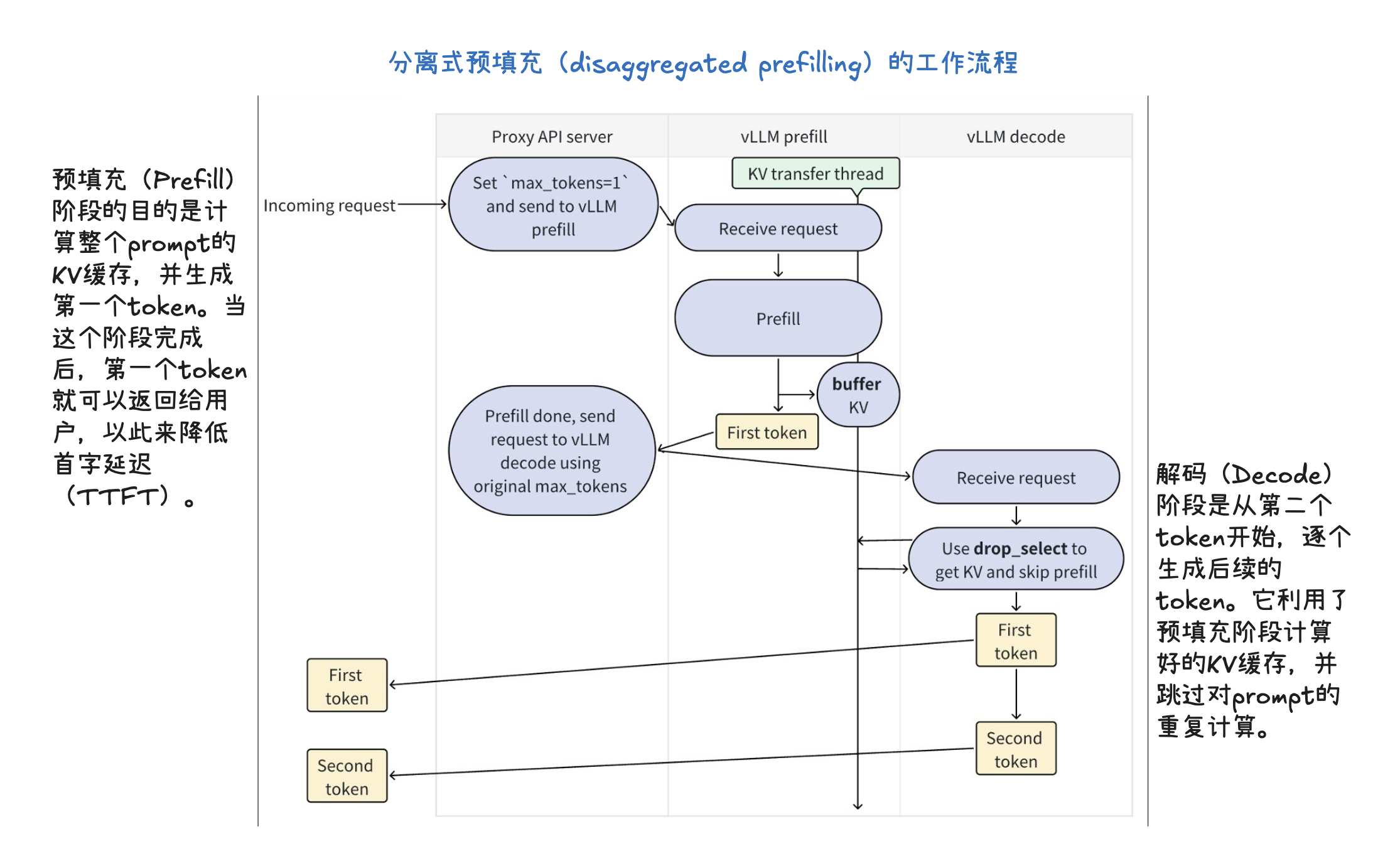 - KV Cache 传输开销(KV cache transfer overheads): 这种架构的主要缺点是需要在设备间传输 KV Cache。如果 KV Cache 很大,这个传输过程会产生显著的通信开销。