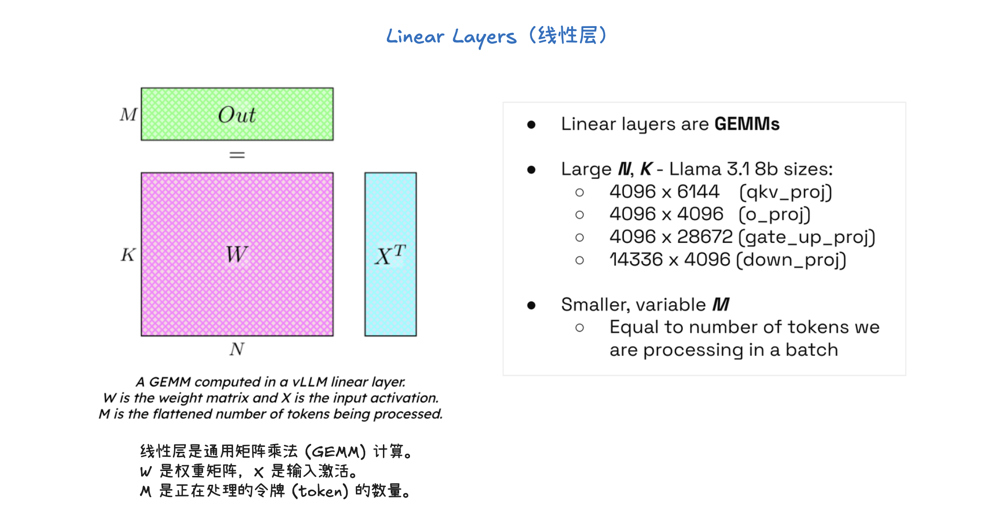 - 输入(Input) 和 权重(Weight) 被分成两块,分别发送到两个设备上。